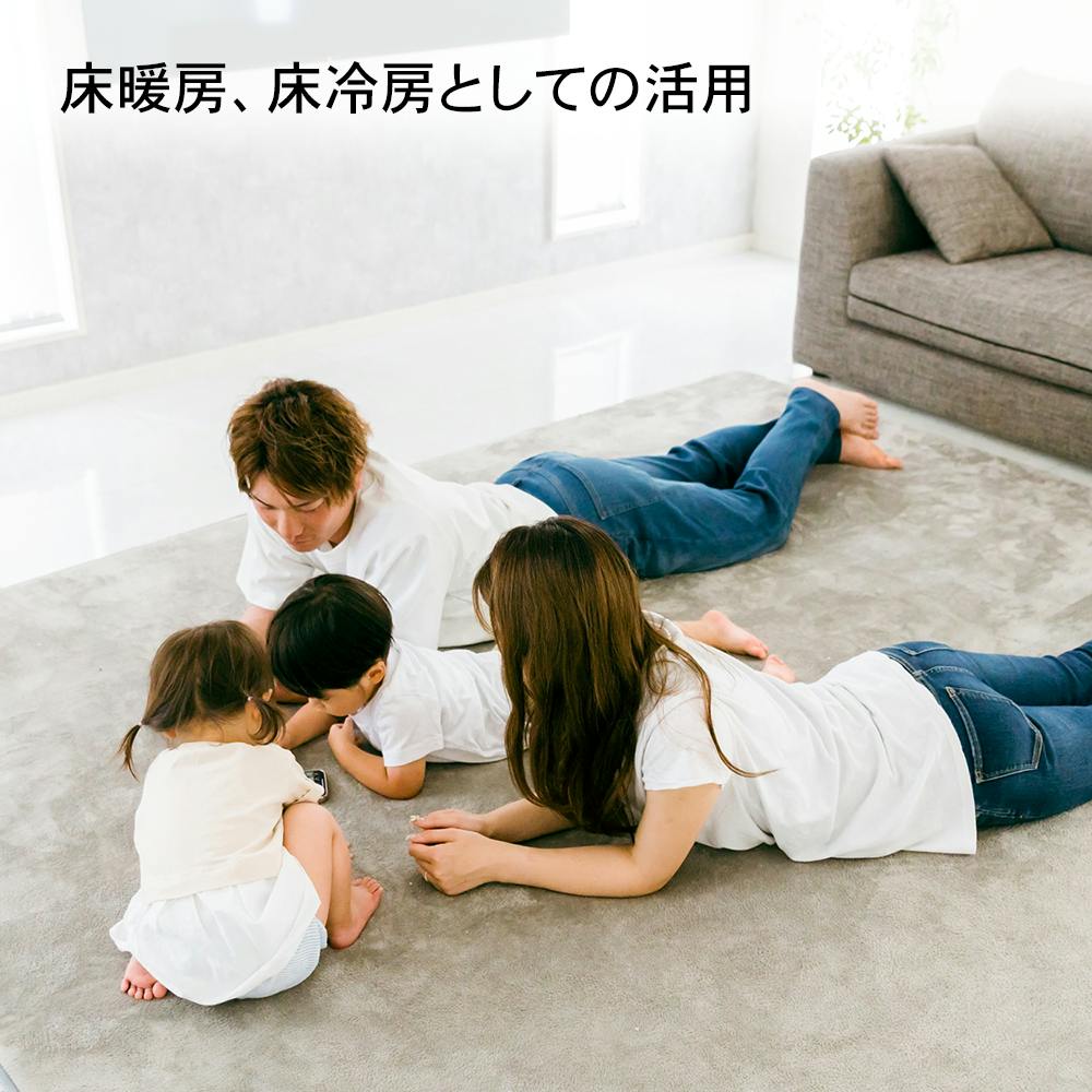 寝具として作られた冷温水マットですが、じゅうたんとして使用すれば、床冷暖房としても使用可能です。