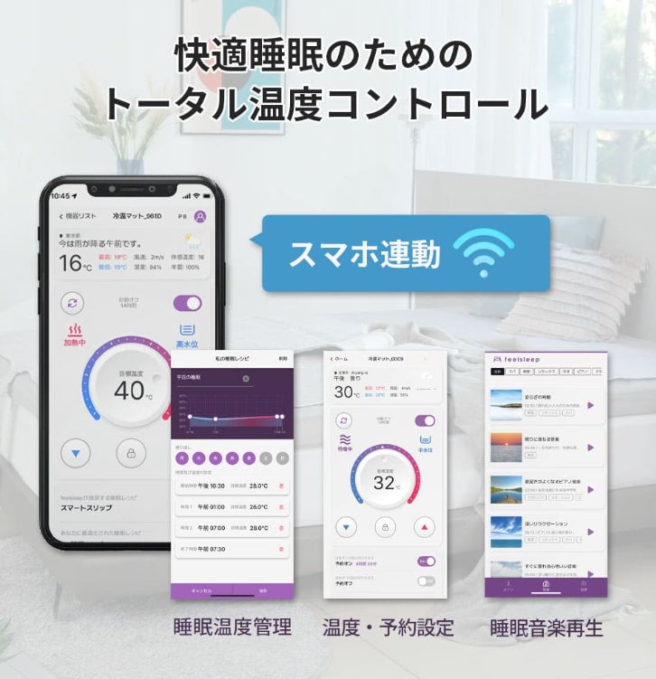 寝た瞬間から就寝中、さらに起床までトータルで睡眠の温度コントロールを提供します。