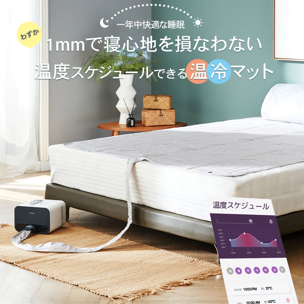 ※ 設定可能な最低温度は20℃であり、設置場所の周辺温度に応じて設定温度に到達できない場合がありますので、ご了承ください。(設定温度に早く到達するためにはマットに布団をかけて保冷を維持してお使いください。) ※お休みの1時間前に電源を入れておくと、より快適にご使用いただけます。
