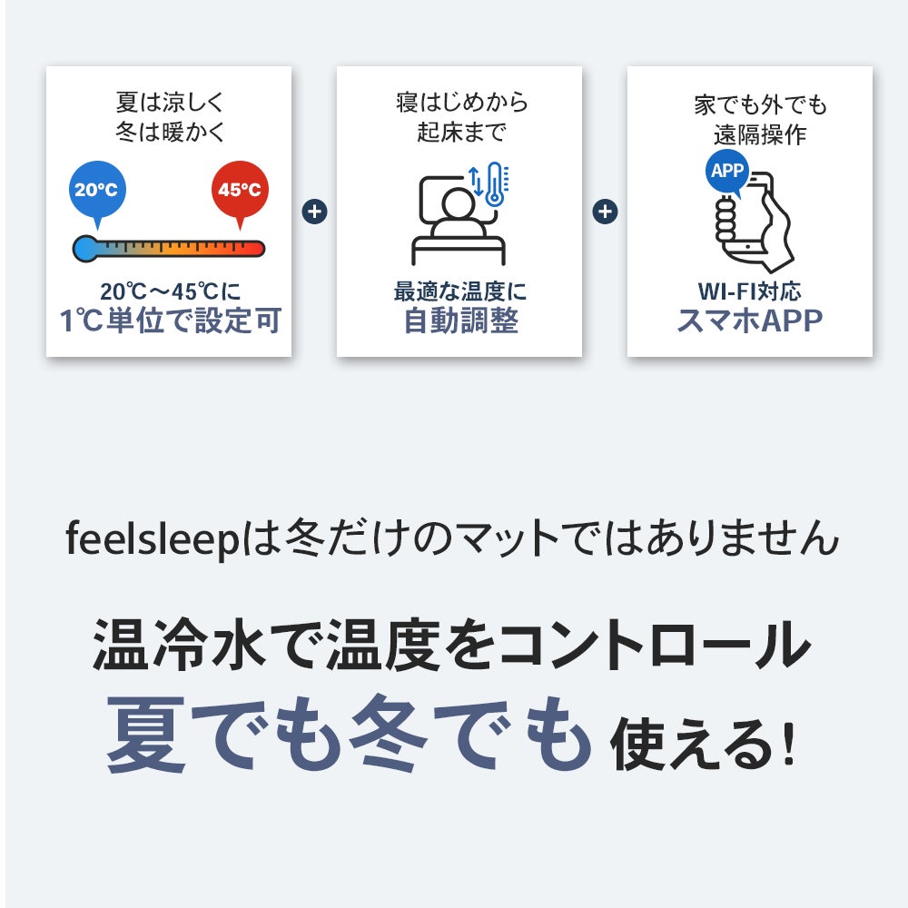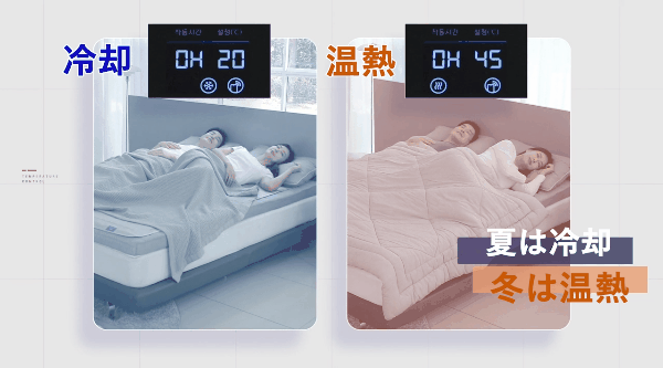 夏は20℃~冬は45℃までマットの温度を変え、快適な睡眠を助けます。