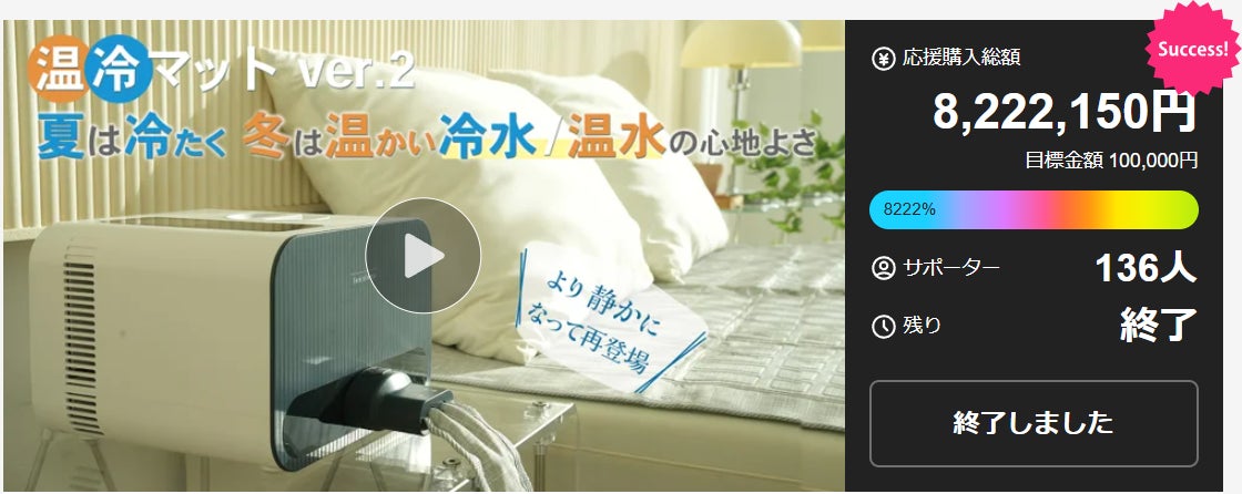2025/08/14 17:13サポーターの皆様、お気に入り登録をしてくださっている皆様 いつも応援ありがとうございます。【重要なお知らせ】 超早割25%OFF(残り2台)は明日まで!お見逃しのないよう、お早めにご支援ください!多くの方から「夏だけしか使えないの?」というご質問をいただきますが、 feelsleepは一年中快適にお使いいただけます!夏は20℃まで冷却- エアコン代を大幅節約 冬は45℃まで加温- 電気毛布より省エネで安全 さらに、春・秋の微妙な気温調整にも最適「ちょっと肌寒い」「少し暑い」そんな時期こそfeelsleepの出番です。電熱線を使わない水循環システムだから、 一年中安心してお使いいただけます。 火災リスクゼロ、電磁波もゼロの安全設計です。一年中の快適な睡眠への投資、今がラストチャンスです! 引き続き、皆様のご支援をよろしくお願いいたします。 もっと見る