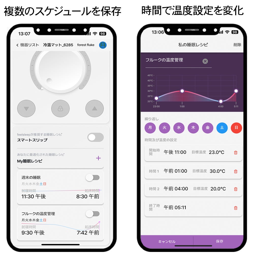 寝た瞬間から就寝中、さらに起床までトータルで睡眠の温度コントロールを提供します。