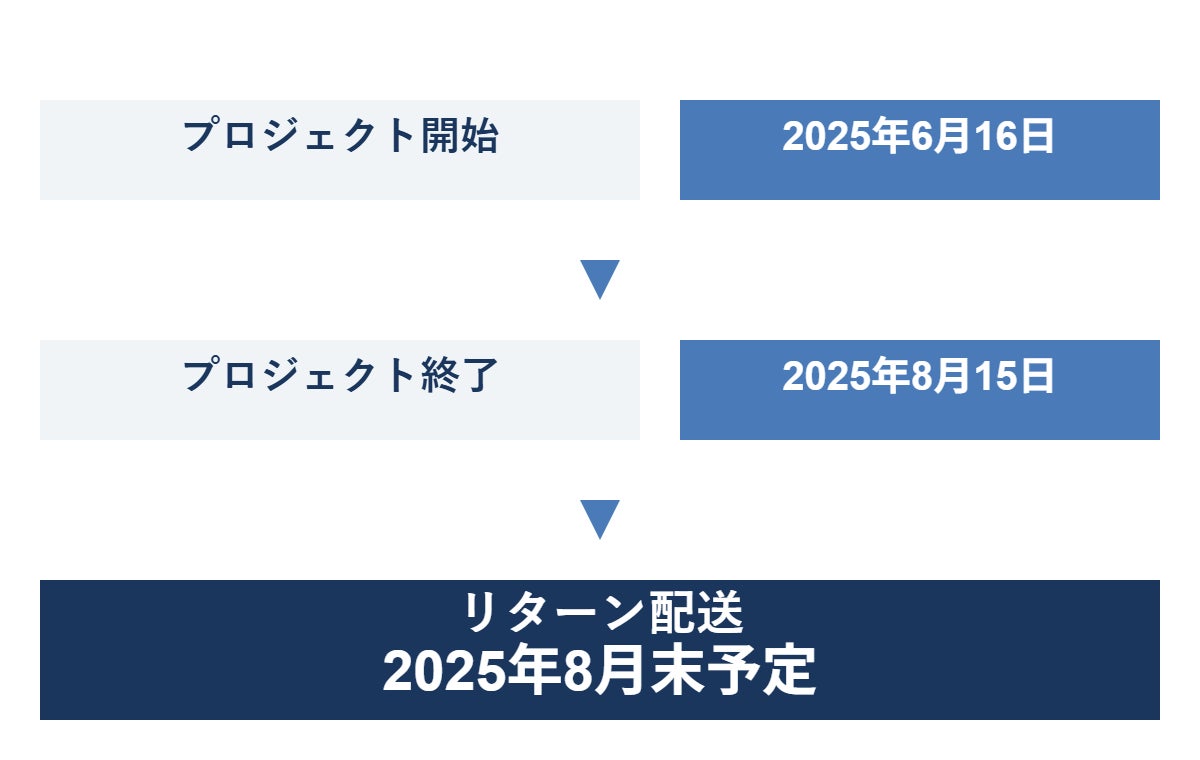 本文中に記載させていただいたスケジュールは、あくまでプロジェクト公開時点の予定です。購入の性質上、配送遅延のおそれがございます。