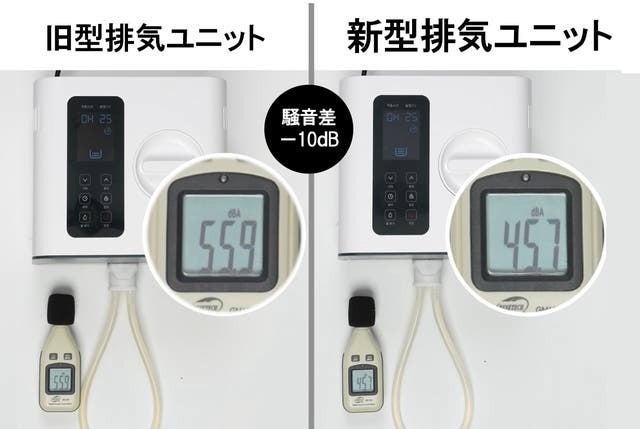 新型では排気ファンの構造とパーツの見直しとポンプユニットの構造変更により騒音を減らすことに成功しました。