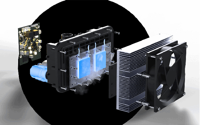 冷却、発熱は水を使って行います。温度が上がりすぎることもなく火事などの心配も少ないのが特徴。