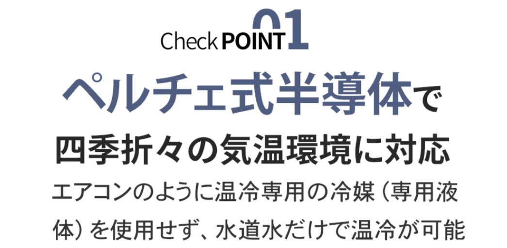 温冷水を作り出すペルチェ素子の組立工程と動作のプロクラムを見直しました。耐久性が上がり壊れにくくなるとともに、さらに冷温水が効率よく出力できるようになりました。