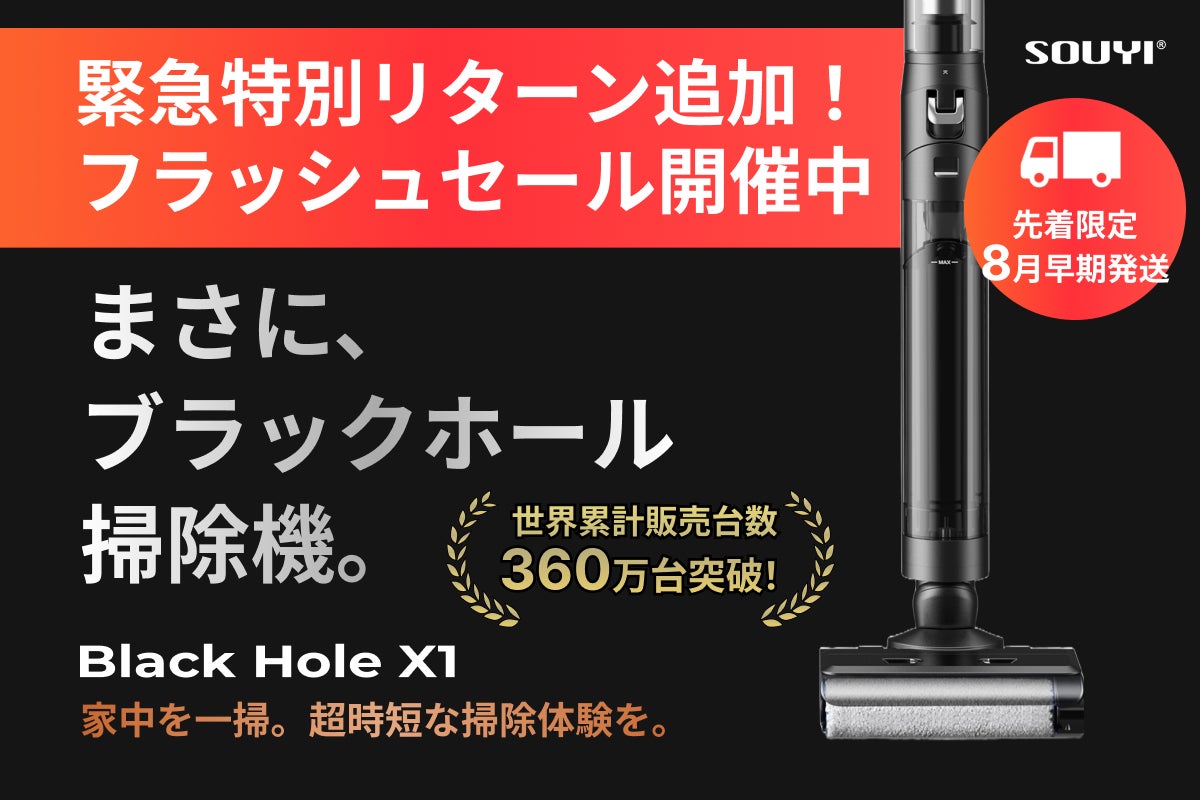 2025/09/12 18:00こんにちは、ソウイジャパン株式会社です。ブラックホール掃除機《Black Hole X1》プロジェクトに多くのご支援をいただき、誠にありがとうございます。■ いよいよ明日、プロジェクト終了ついにプロジェクト終了まで残り1日となりました。明日をもって応援購入の受付が締め切りとなります。「気になっていたけどまだ…」という方は、ぜひこの機会をお見逃しなく!■ ブラックホール掃除機の特徴・《Black Hole X1》は、1台で掃除を完結させる5in1マルチ掃除機。・強力吸引で細かなゴミまでしっかり回収・水拭き機能で床のベタつきを同時にケア・除菌・乾燥で衛生的な仕上がり・自動洗浄でお手入れラクラク掃除の手間を大幅に減らし、家中を清潔に保つことができます。■ 今ならどこよりも安い!CAMPFIRE掲載期間中だけの特別価格でご提供中。この価格で手に入れられるのは明日まで。ぜひ最後のチャンスをお見逃しなく!ソウイジャパン株式会社スタッフ一同 もっと見る【今なら1営業日で発送】公開終了まで残り2週間!