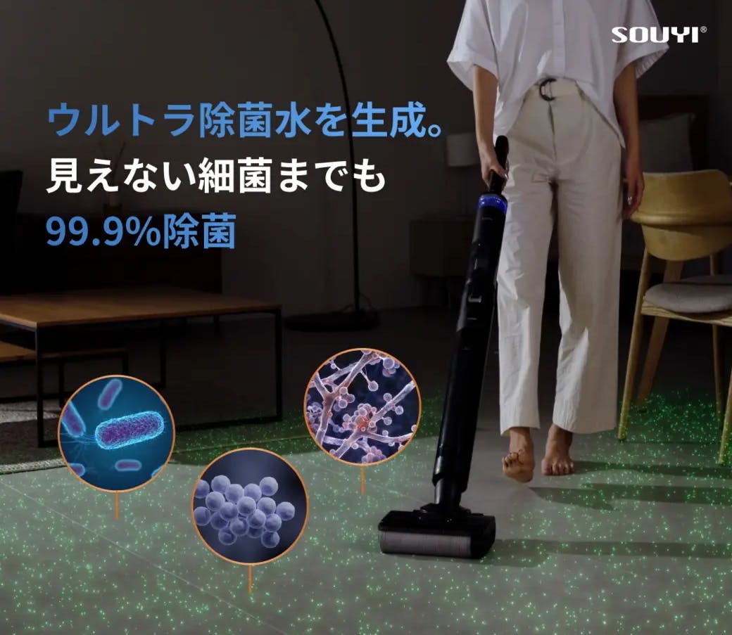ウルトラ除菌水を自動生成し、しつこい汚れだけでなく、見えない細菌まで99.9%除菌!