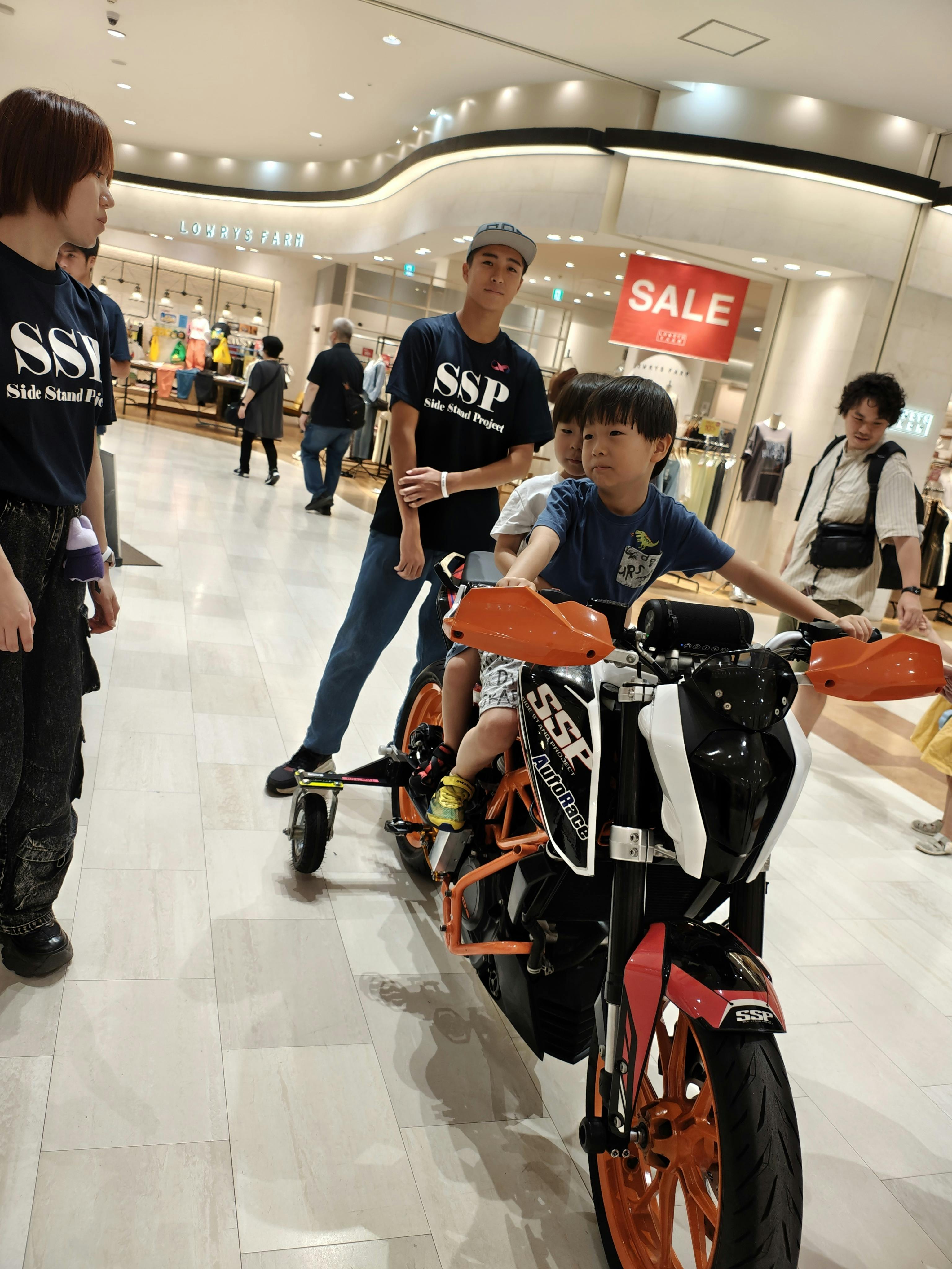 本当にオートバイで走っているような気分で、店内通路を走行いたしました。