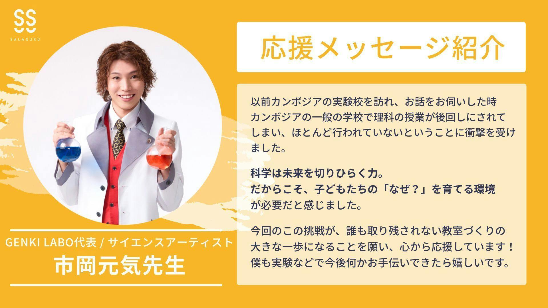 GENKI LABO代表の市岡元気先生から応援メッセージをいただきました。ありがとうございます!