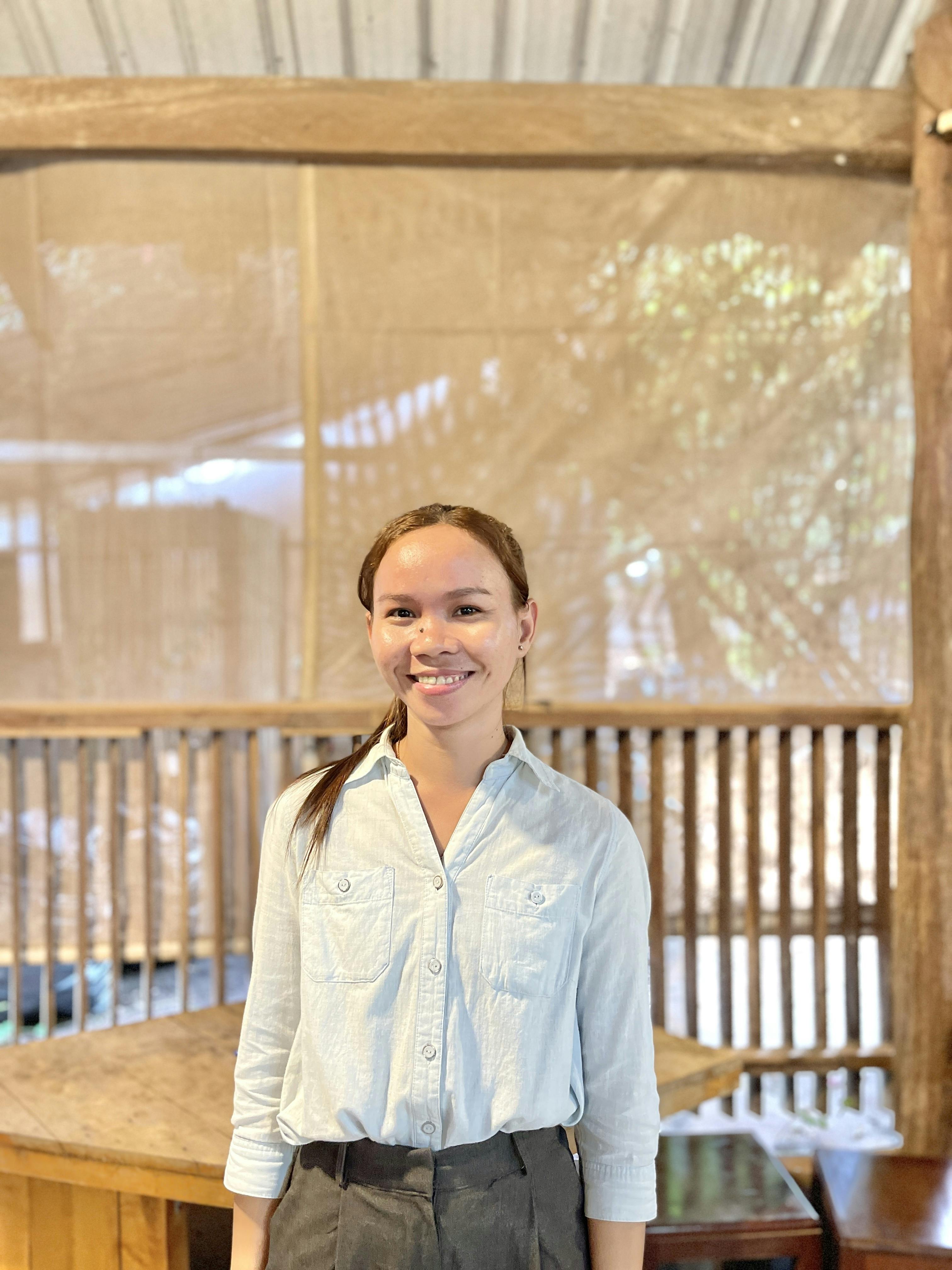 日系の財団で働いていましたが、団体がカンボジアから撤退することになり2014年にSALASUSUに転職しました。最初は販売スタッフとしてお店に立っていたけど、2019年から部署を移り、工房で働く作り手のトレーニングやカウンセリングを担当するようになり、いまはスクールチームに所属しています。