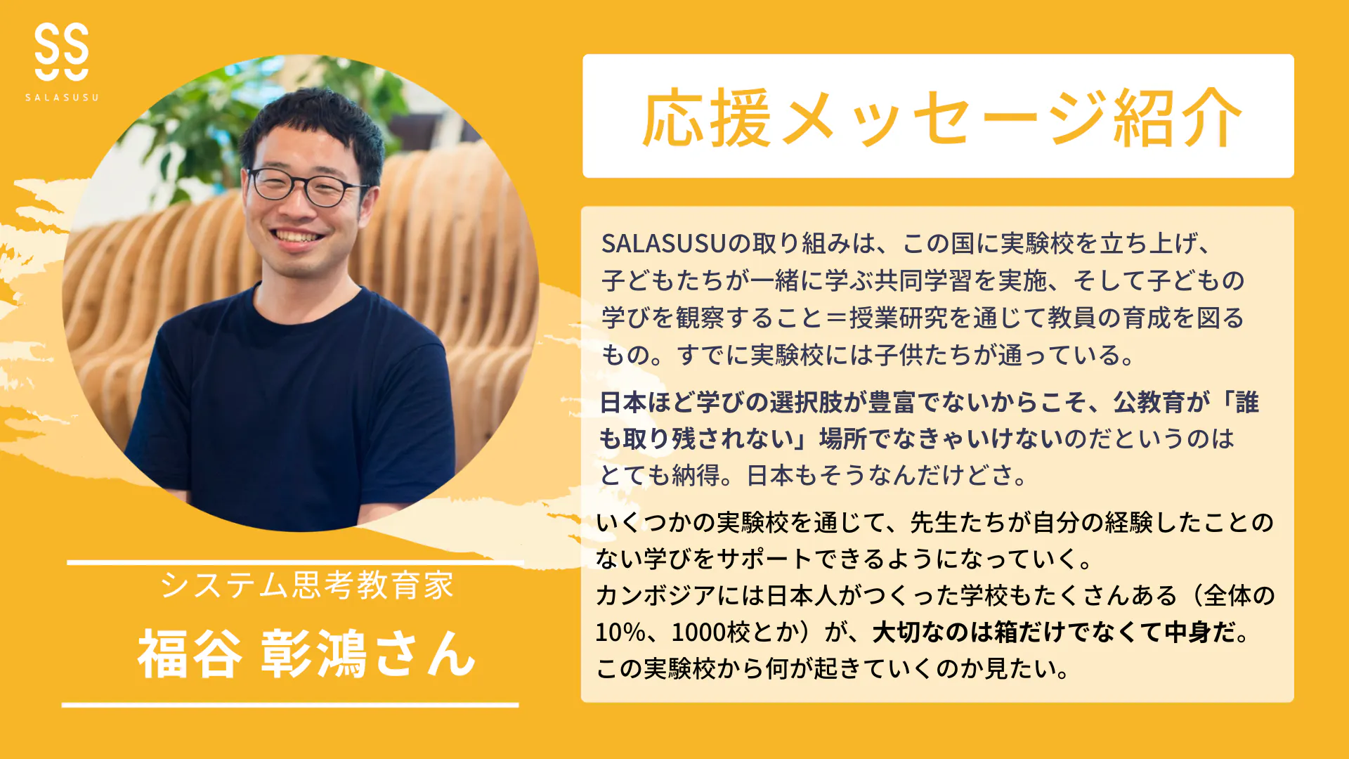 システム思考教育家 福谷 彰鴻さんから応援メッセージをいただきました。ありがとうございます!