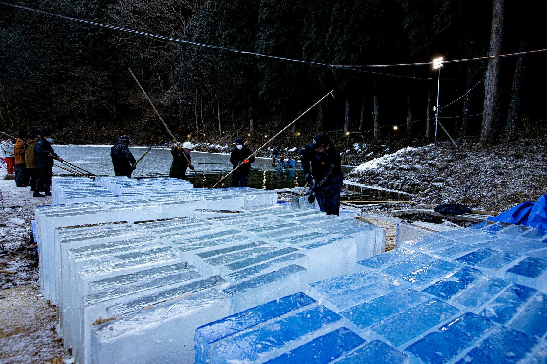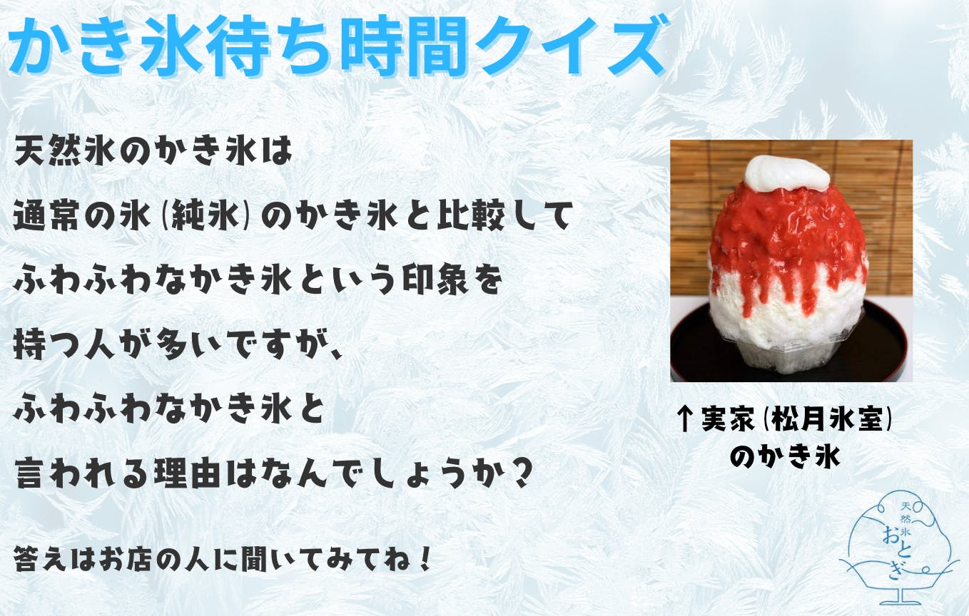 (天然氷とは、冬の寒さだけでじっくりと凍らせた、全国にわずか7軒の蔵元だけがつくる貴重な氷です。)