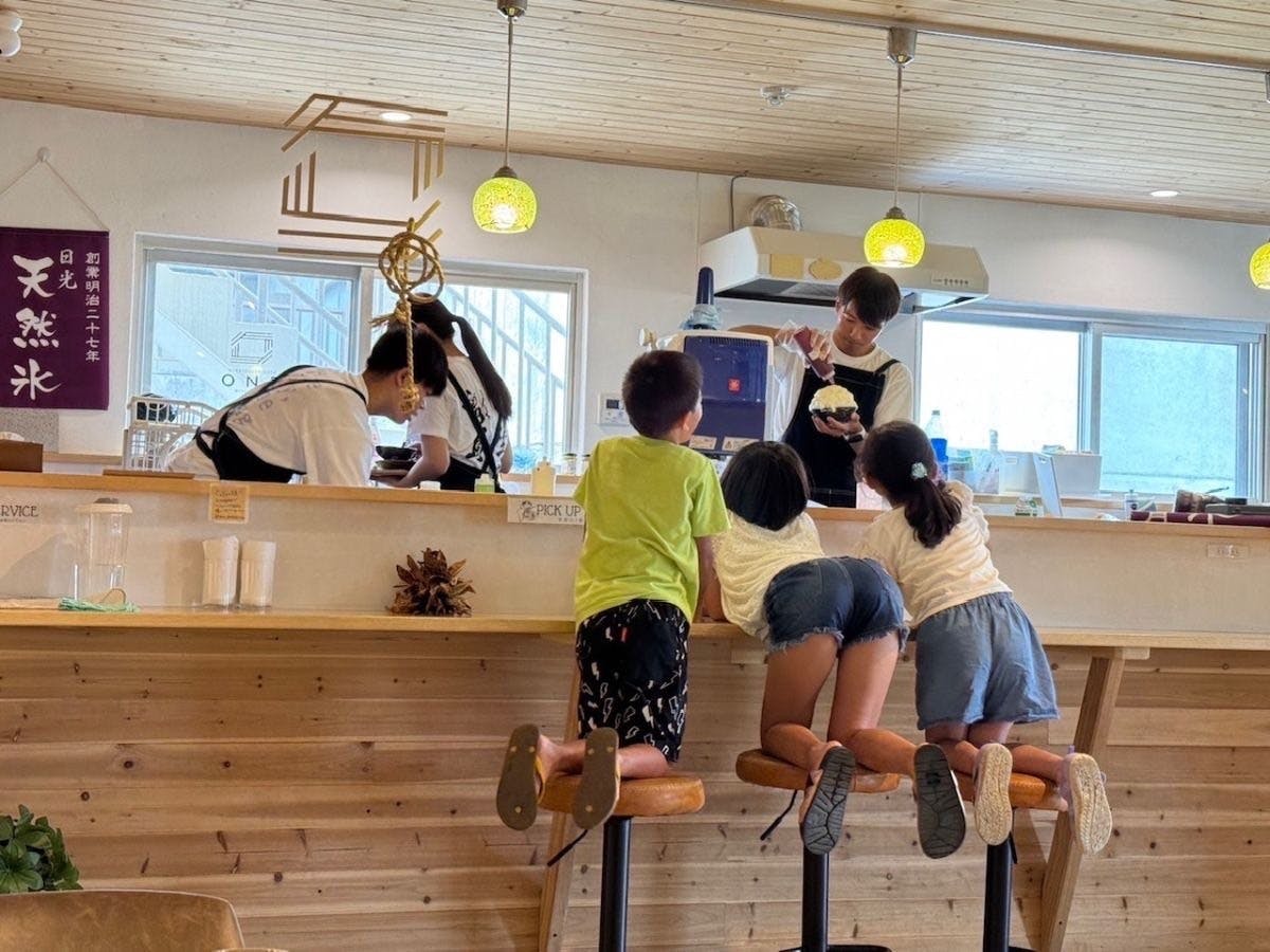 私たちがつくりたいのは、お客様がただかき氷を「食べて終わり」ではない時間です。木の温もりを感じられる内装、何気ないやりとり、ふと気持ちがゆるむような空気感、そんな小さな積み重ねを通して、「なんだかほっとする」「やさしい気持ちになれる」そんな時間を届けられるような空間づくりを目指しています。