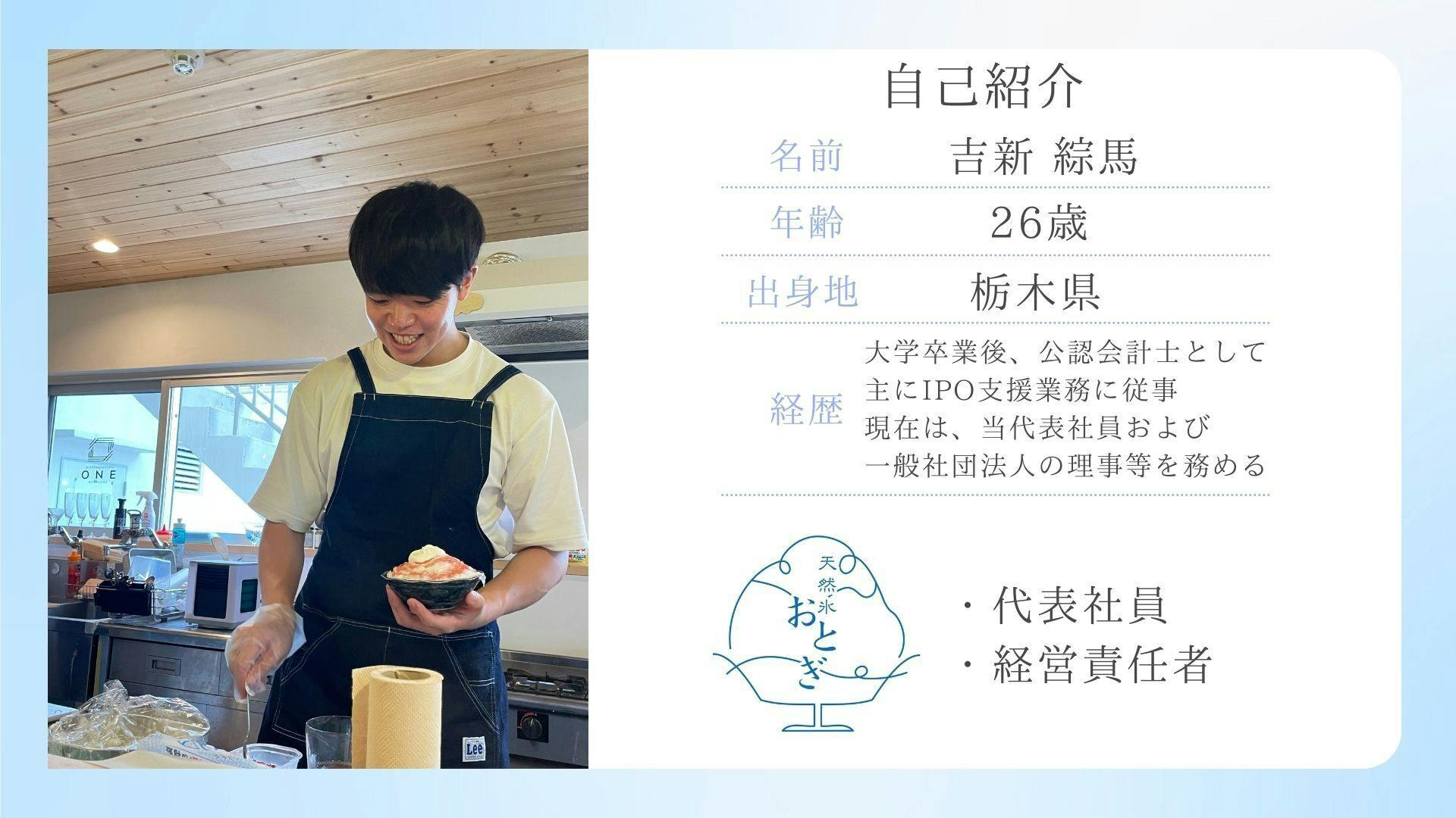 沖縄県・宮古島で「天然氷 おとぎ」というかき氷屋を営む、綜馬(そうま)と申します。