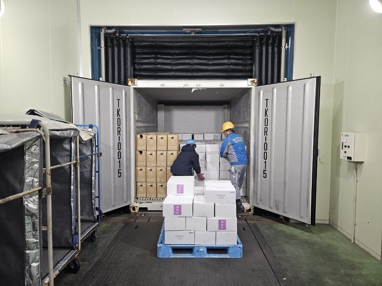 少しでも手頃な価格で最高のクオリティを届けたいという思いから、氷の輸送には多くの工夫を重ねています。日本通運様・沖縄急送様のご協力のもと、約5tの天然氷を冷凍コンテナで一括輸送しています。