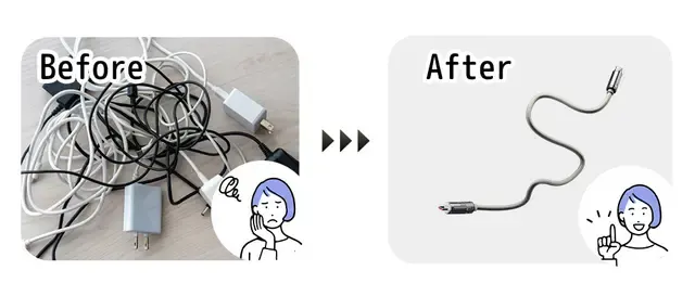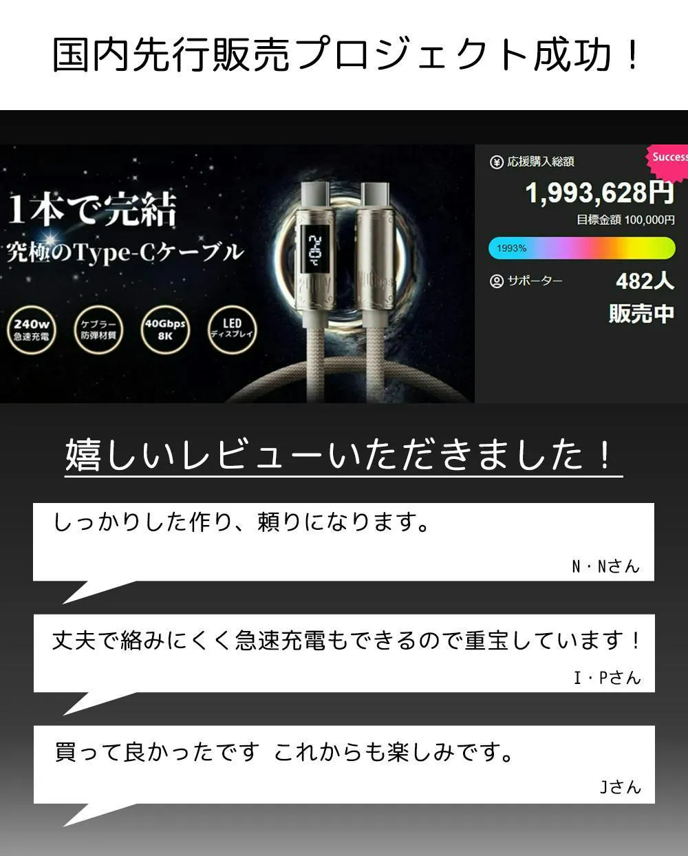 現在人は多種多様なデジタル機器を持ち、それぞれ異なる規格のケーブルを使わなければならない。買い揃えが面倒だけではなく、使用や収納の際に非常に手間がかかってしまいます。さらに、近年ではType-Cポートの普及が進んでおり、さまざまな充電ニーズに対応でき、長年にわたっても使える高耐久なケーブルが必要だと感じていました。ついにこの理想的な製品に出会い、「これだ!」と思ったことが、このプロジェクトを始めました。