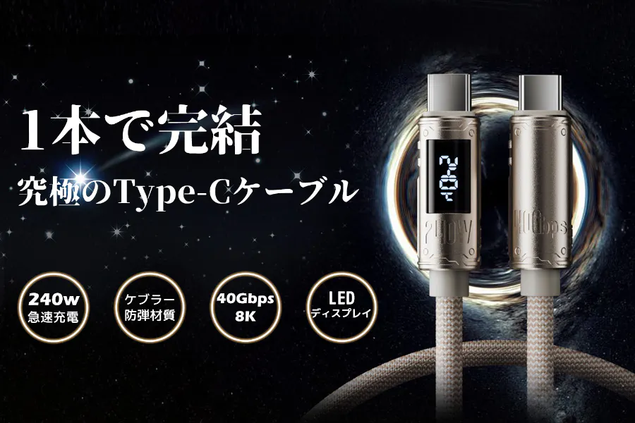 現在、スマホだけでなくゲーム機やノートパソコン、高性能なタブレットなど、最新のデジタル製品が次々と登場している中、高出力と高充電効率が必要とされ、急速充電対応のType-Cケーブルは広く使用されいます。240Wの急速充電Type-Cケーブルは多種多様なデバイスに適用し、忙しい日常の中で効率がよく充電できるため、必需品と言えます。