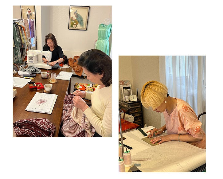 お持ち込みいただいた着物に合わせて、その人だけのデザインを考えたり、「こうしたらもっと素敵になる!」という技術や工夫も伝えています。
