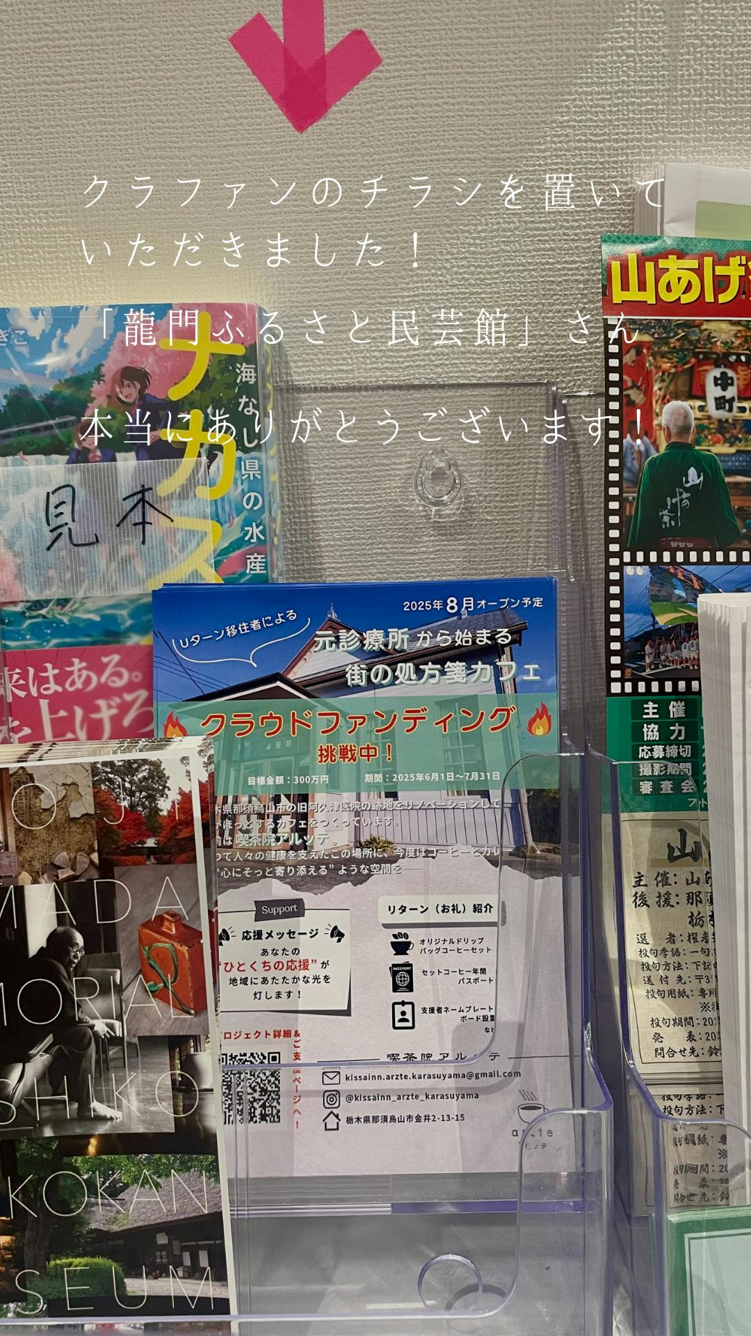 に、クラファンのチラシを置いていただけることに!