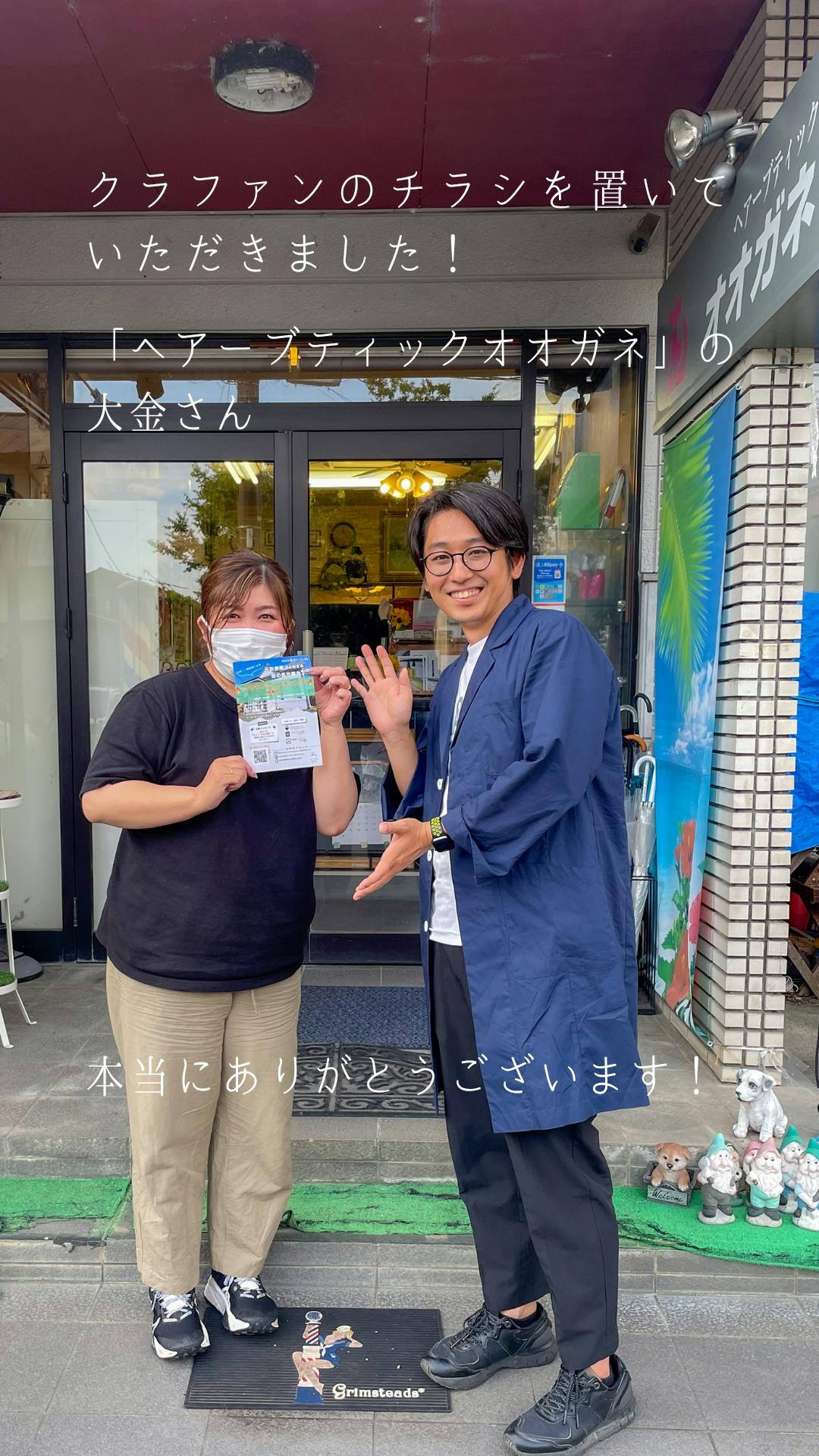 そして、前回写真を撮りそびれていた「ヘアーブティックオオガネ」の大金さんとも、チラシ追加のタイミングでようやくツーショットを撮らせていただきました。