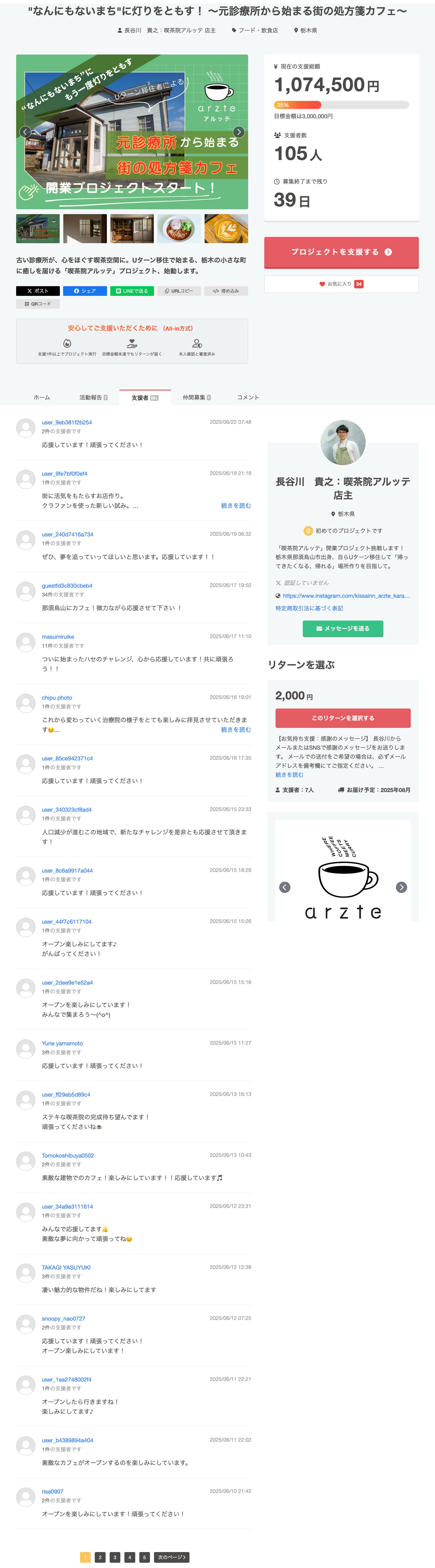 クラファンのご支援者数が100名を超え、支援総額も100万円を突破しました!!!
