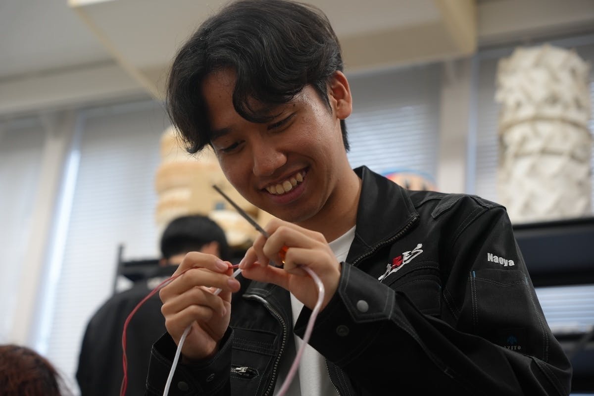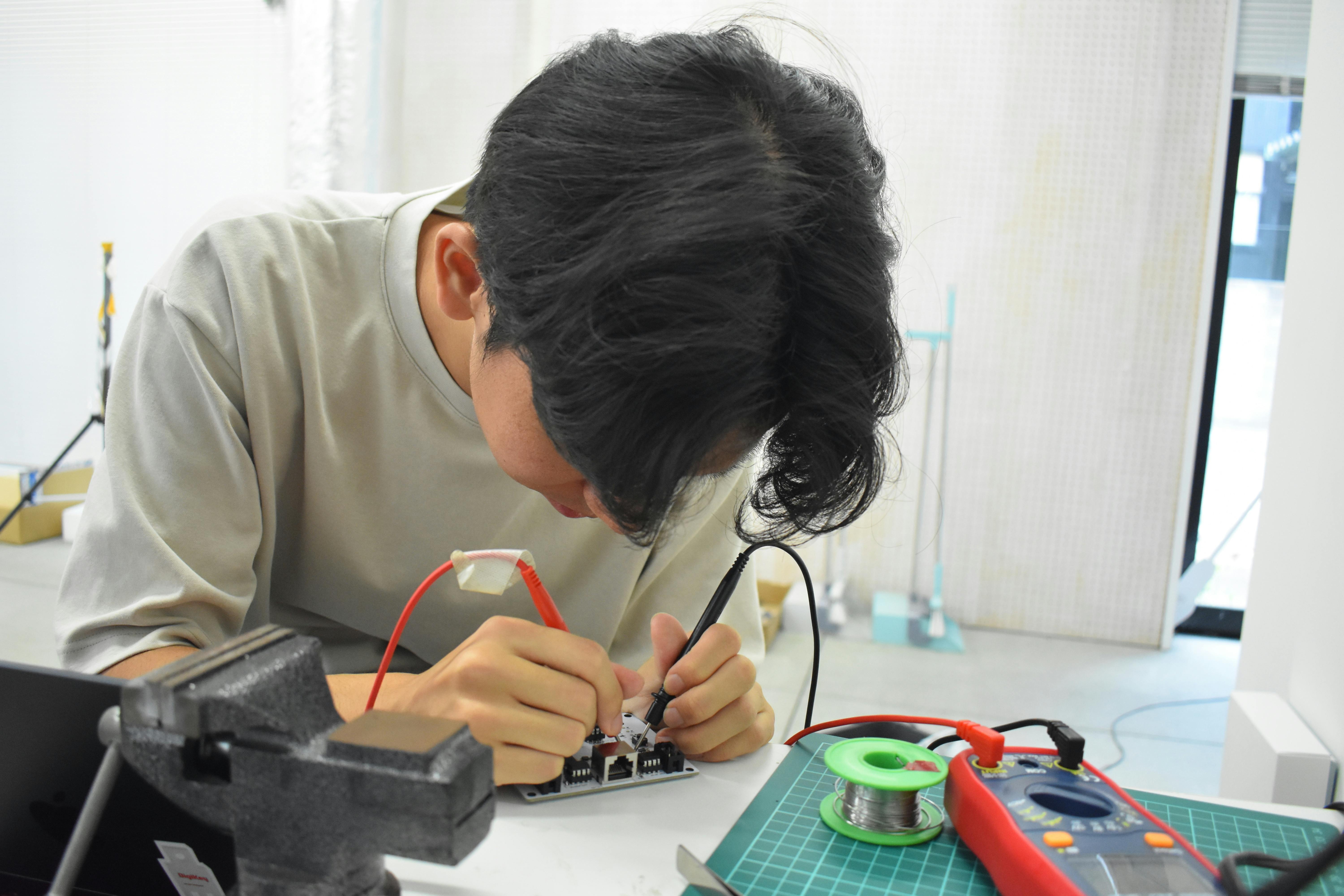 未経験ながら圧倒的な吸収力で実力を磨いてきた期待のホープ。今では電装チームのリーダーとして中心的な役割を担い、彼なしではロボットアームが動かない!! 最近では一人で開発をぐいぐい進めてしまう姿に、周囲も思わず驚かされることもしばしば。