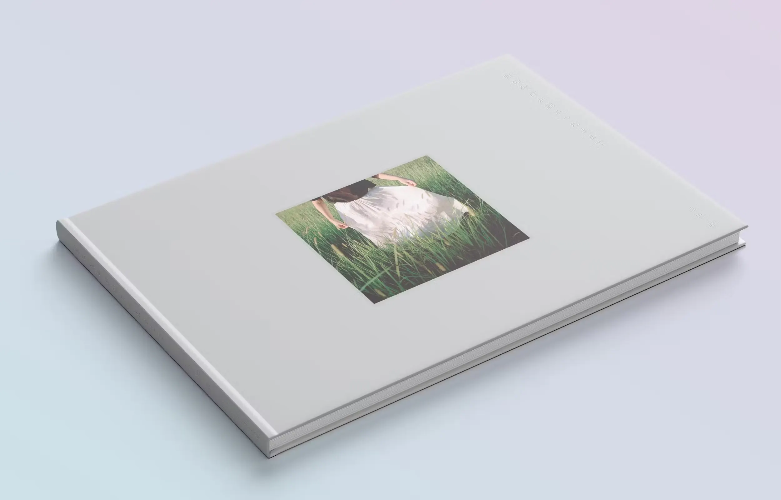 視線はまず、貼り込まれた写真に導かれ、やがてページをめくろうと小口に触れたとき、ようやく空押しで刻まれた文字が現れる──。