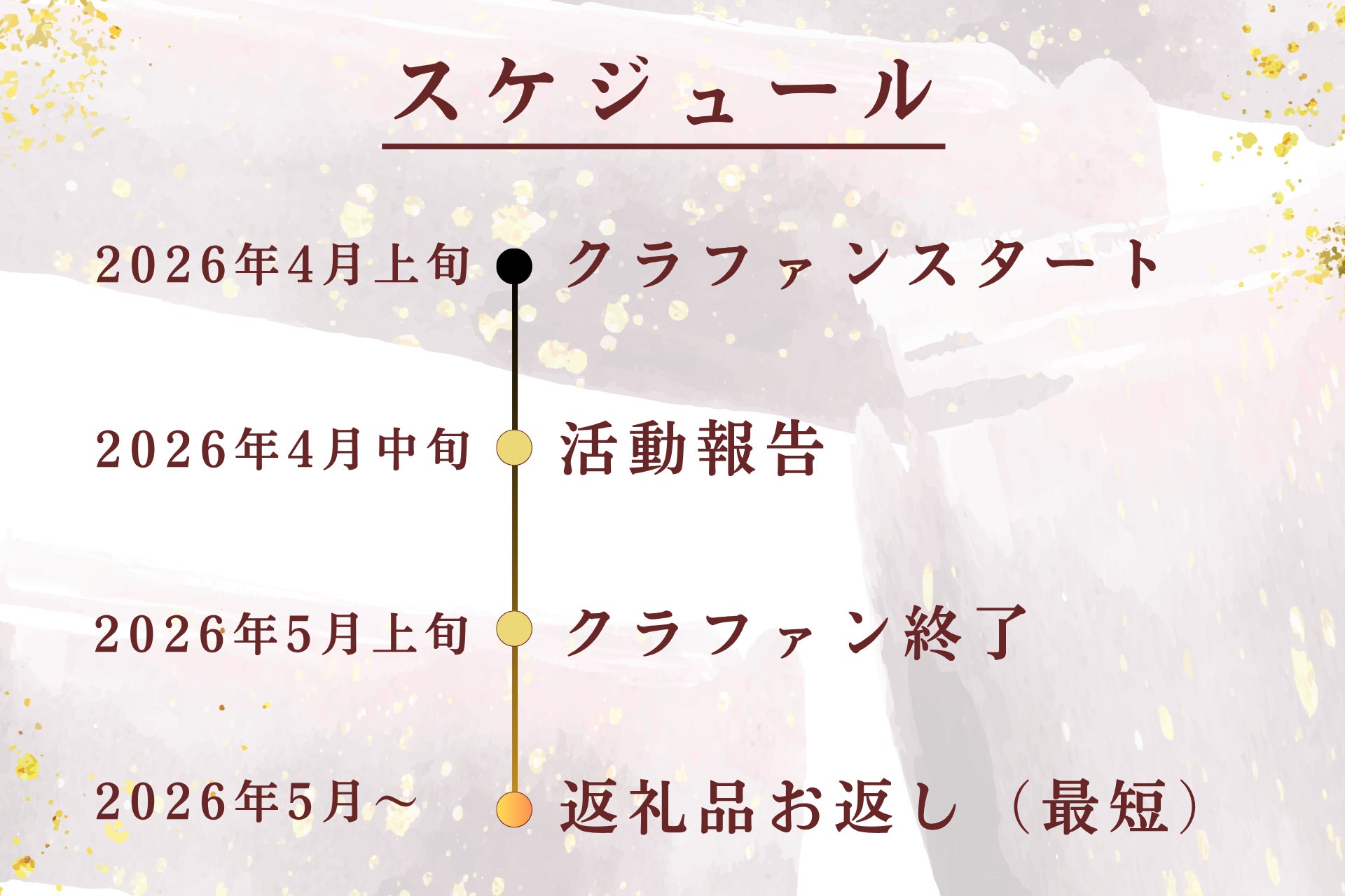 ※本文中に記載させていただいたスケジュールはあくまでプロジェクト公開時点の予定です。ご支援の性質上、配送遅延の可能性がございます。