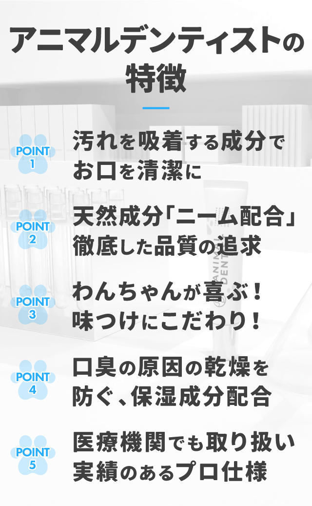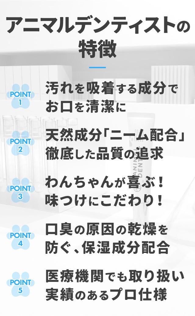 アニマルデンティストは、ほのかな甘味。わんちゃんが自分からなめにくるような味付けにしました。