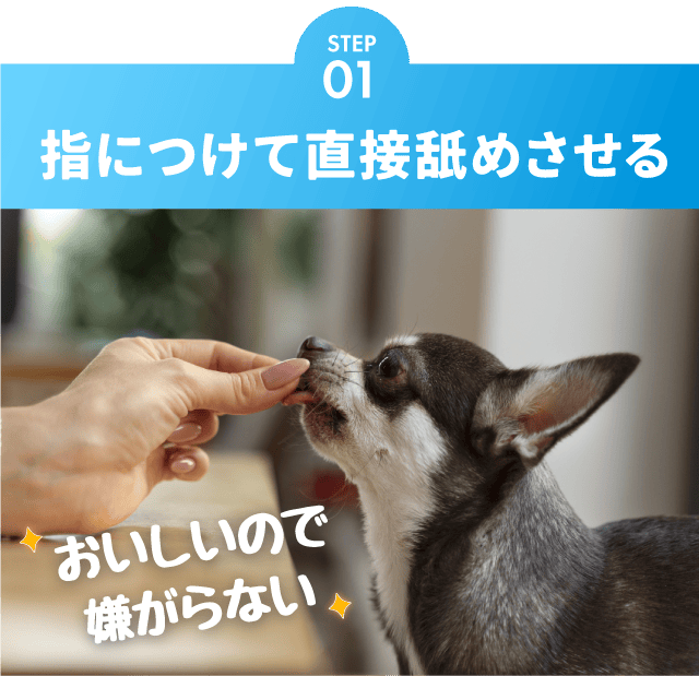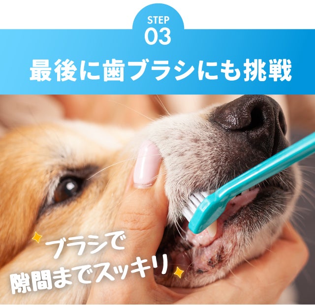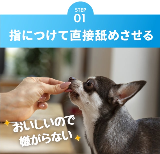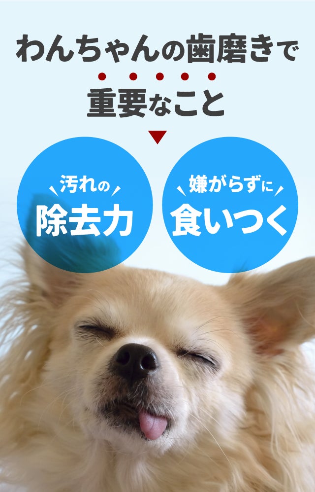 「指につけて舐めさせる」からはじめる、わんちゃんも喜ぶデンタルケア!汚れ、ニオイを解消して、元気な毎日を一緒に過ごしましょう。