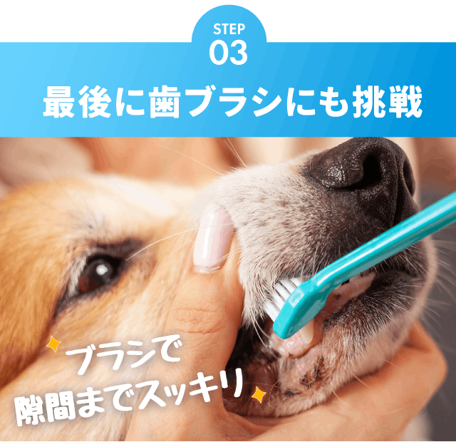 歯ブラシは汚れを落とすことに適していますが、ご存知の通り犬は口に異物が入ることを嫌がります。無理に歯ブラシをしようとすると、お口を傷つけてしまい逆効果になることも。