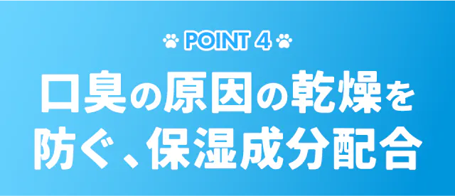 口臭の原因のひとつは「乾燥」アニマルデンティストは保湿成分配合なので、口臭が発生しにくい環境をつくります。