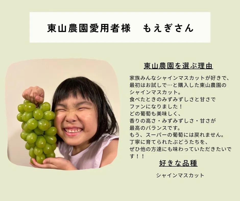東山農園は、自然の恵みを最大限に生かし、心を込めて育てたぶどうをお届けすることを使命としています!
