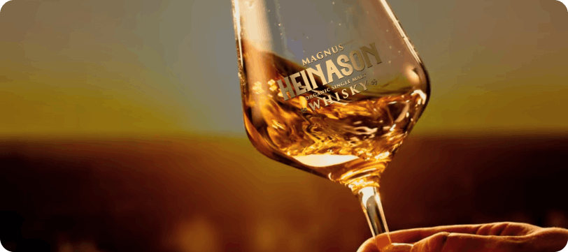 そんな「水」に対しての強いこだわりを持つメーカーが探し当てたフェロー諸島の火山の非常に高品質な美味しい水を引っ提げ、メーカーにとって「デンマークいち美味しいウイスキーをつくる蒸溜所」と感じるウイスキー蒸溜所と組んでつくり上げたのが「マグヌス・ハイナソン オーガニックシングルモルトウイスキー」である。長い年月にわたってデンマークと強い結びつきを持つ現デンマーク自治領フェロー諸島の伝説のヒーローをイメージして出来上がったシングルモルトウイスキーは、EUでオーガニック認定を受けたデンマーク産のモルト(*日本ではオーガニック商品ではありません)とフェロー諸島の非常に特別な水でつくられる。熟成のほとんどを選りすぐりのバーボン樽で過ごし、その後デンマーク産オークの新樽で作られた50リットルの小さな樽に移され出来上がるウイスキーは、バーボン樽由来の甘いバニラ感にデンマーク産オーク樽の心地よいウッディでフルーティな風味が混じり合い、ミネラルたっぷりの非常にピュアな火山の水の影響により、やわらかで奥深い格別な味わいのウイスキーへと仕上がっている。