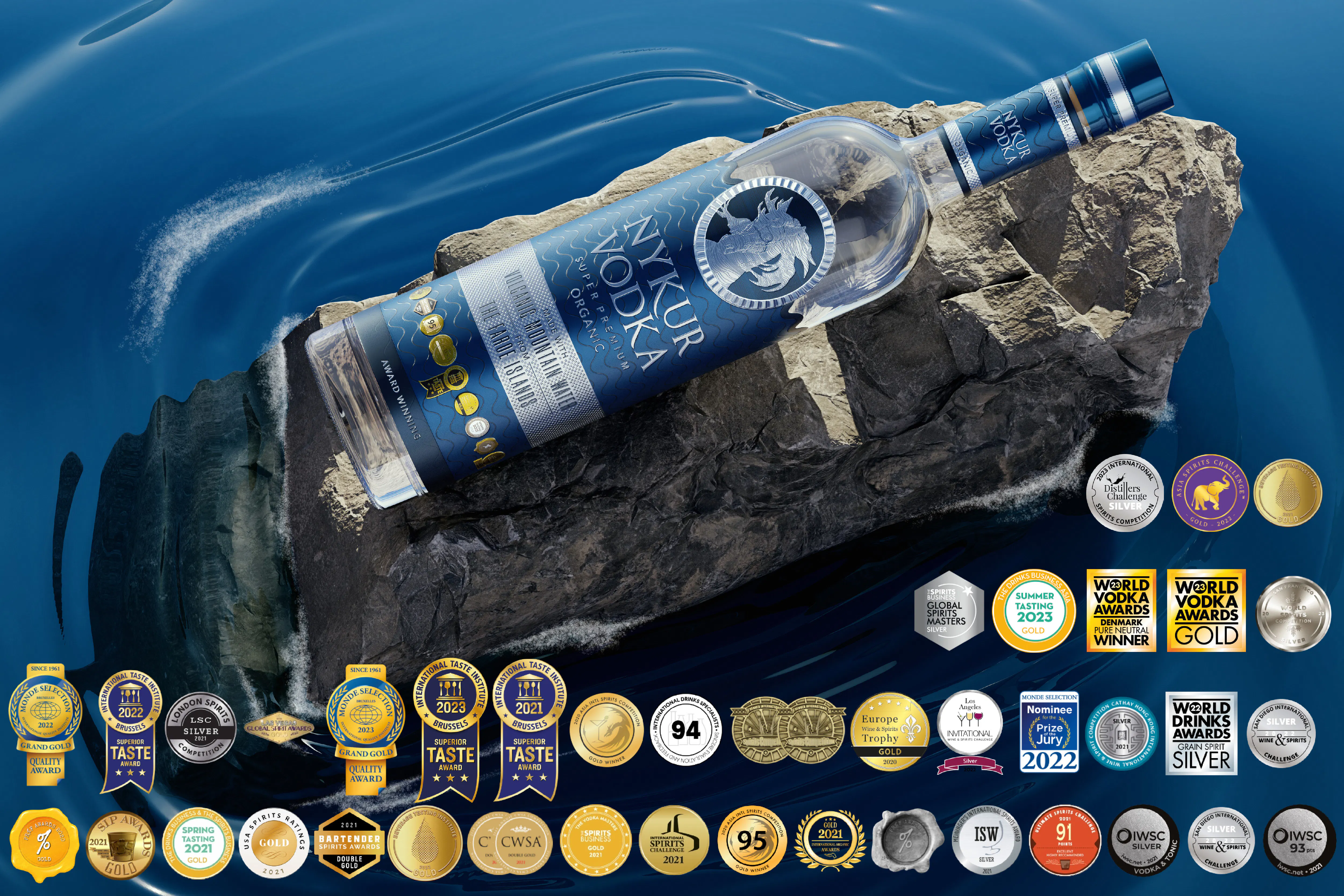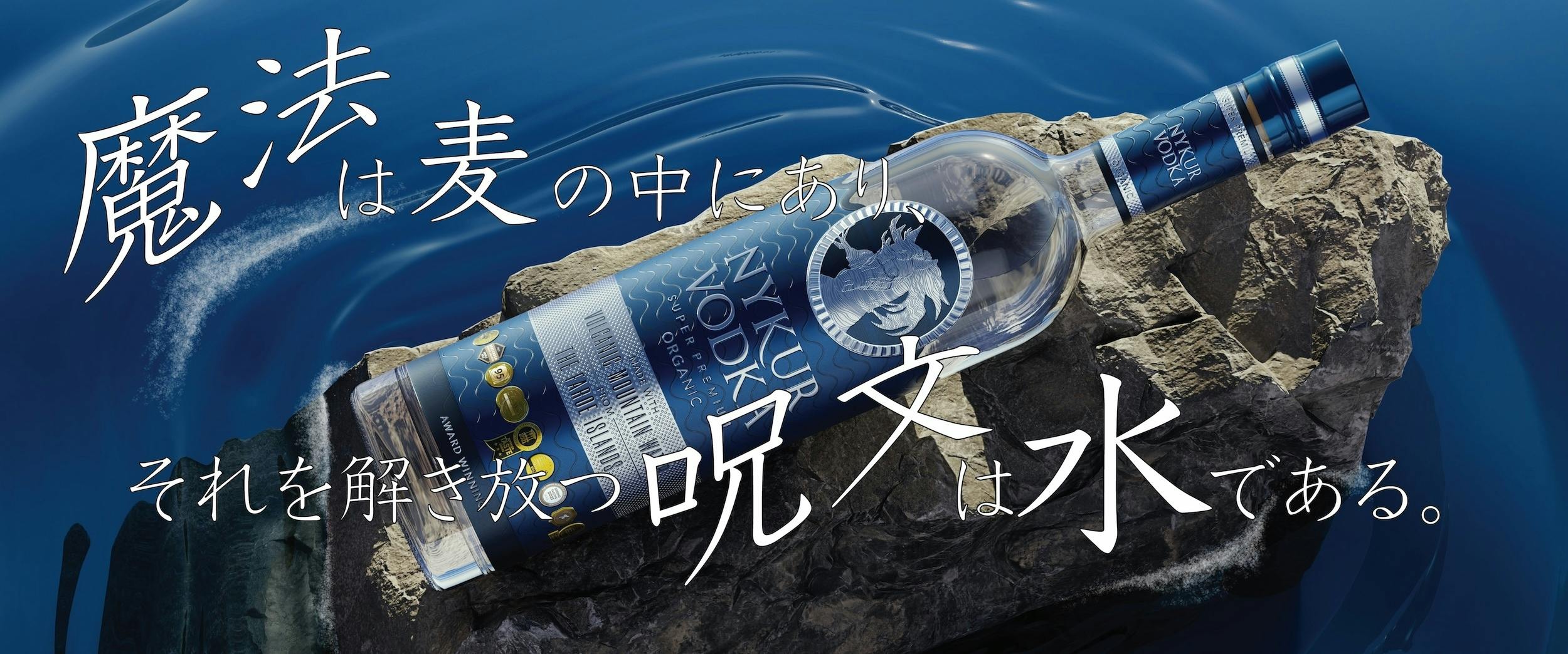 先に触れたように、酒づくりにおいての原料において一切の妥協を許さない同メーカーが、ウォーター・ソムリエのプライドをかけて探し出した「酒づくりに最も適した素晴らしい水」と信じるフェロー諸島のキルヴィ火山の天然ミネラルウォーターと北イタリアの麦でつくったスーパー プレミアム オーガニック*ウォッカは、出会った人をたちまち虜にしてしまう美しい銀色に輝く馬に似た姿をしたフェロー諸島に伝わる伝説の生き物の名前「NYKUR(ニュクア)」と名付けられた。