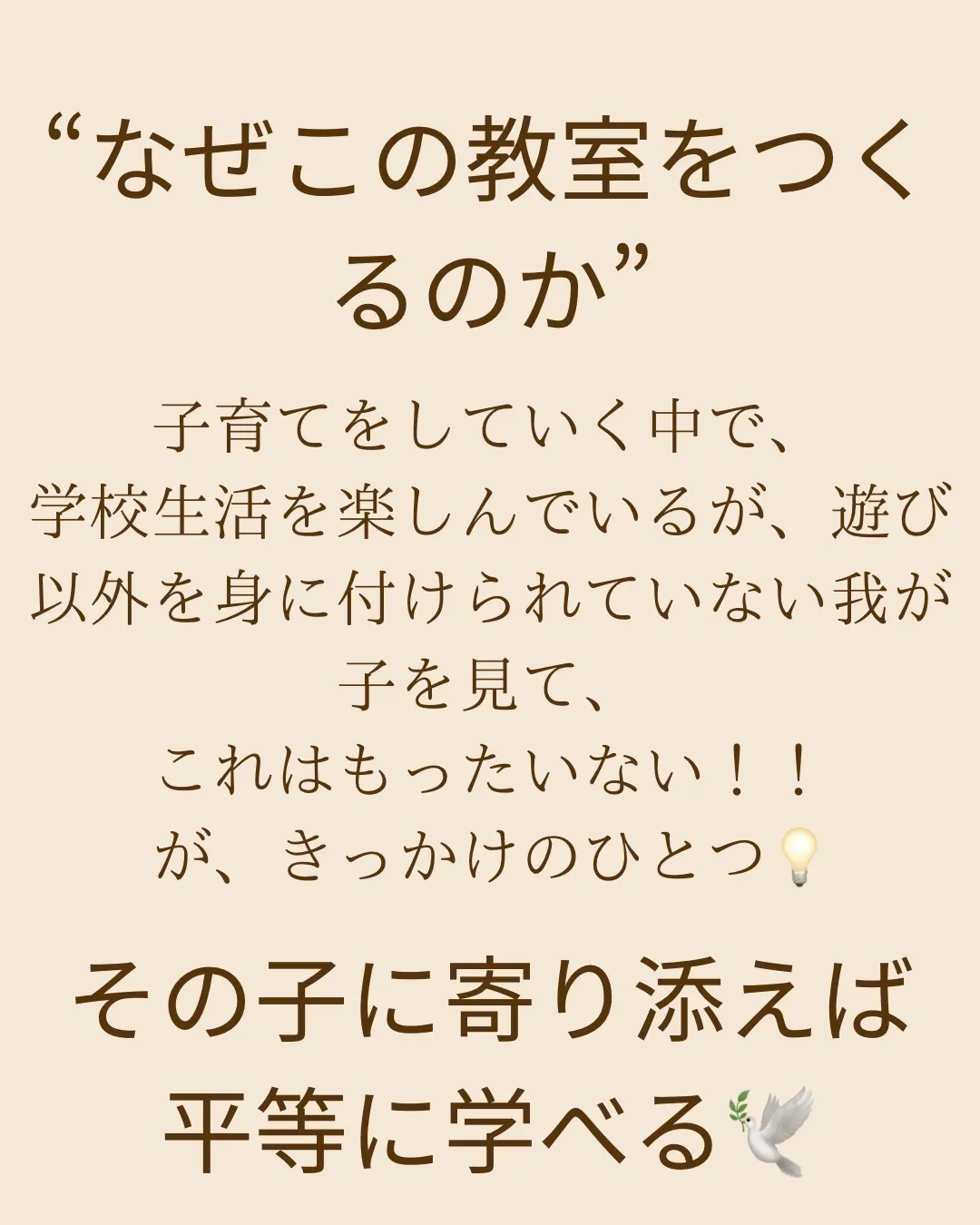 教育現場で働いていた中で、学校だけでは十分に対応しきれない子どもたちのサポートニーズを強く感じました。特に、個々のペースや興味に合わせた教育の重要性を痛感し、それを実現する場が必要だと考えるようになりました。