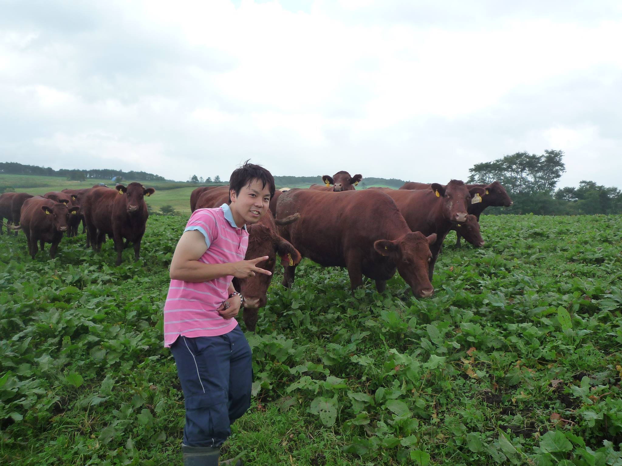 ↓日本短角種と時代錯誤の裏ピースしてる大学院時代の私↓