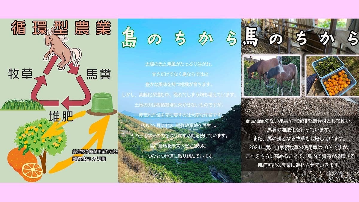 ①ポニーの馬糞を活かした、資源循環型柑橘栽培(実践済み)