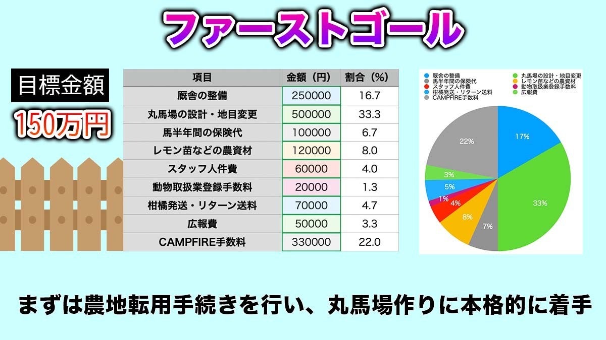 目標金額は150万円です。