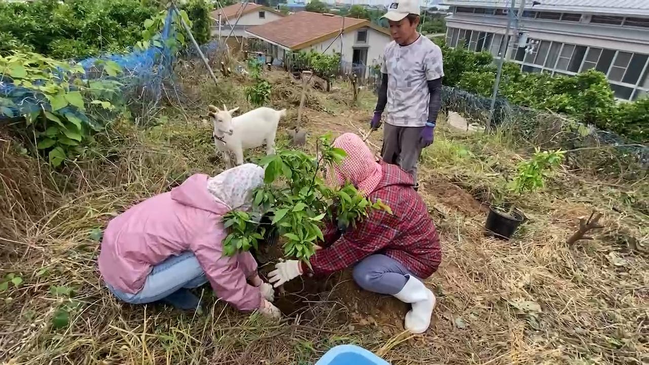 2025/06/30 06:50◯本日の報告今回は山羊のメーギーの脱走対策として厩舎内周りに柵を設置しました。柵の上側に安全対策のため、元豚舎においてあった要らないホースをはめ込み馬も、人にも安全な環境を作れました。柵は購入しましたが、今回のホースみたいに要らなくなったもの、ゴミをうまく作っていきたいですね!◯メッセージ先日、風ちゃんが体調を崩して立っていられなくなるほど元気がなかった時がありました。鼻から緑の粘膜をだしてました.先生からは風邪や馬インフルとは違った症状なので変なところに食べ物が入った可能性が高いと言われました.数時間後、体調は良くなり今は元気です!髪の毛、切りました。動物は言葉がわからないので、サインを見落とさないことを意識しています。そして、考えられる原因を上げて可能性を潰していくことを大事にしています。これって農業もそうですよね。みかんの木も言葉は話さないけどサインは出すはずです。動物も果樹もしっかり観察して、これからも育てていきます。 もっと見る