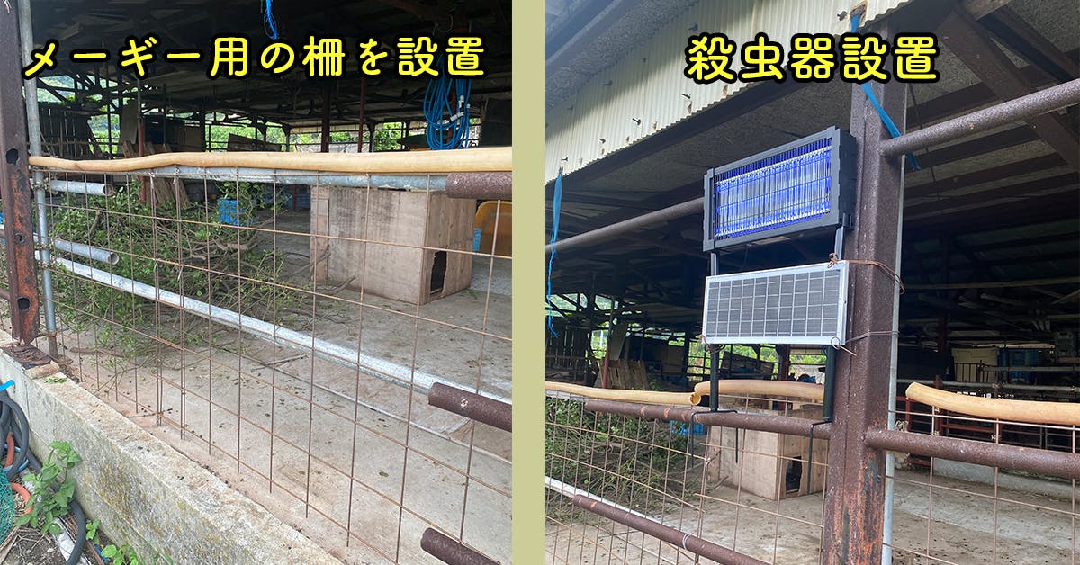 【厩舎内にメーギーが出ないように柵を設置】