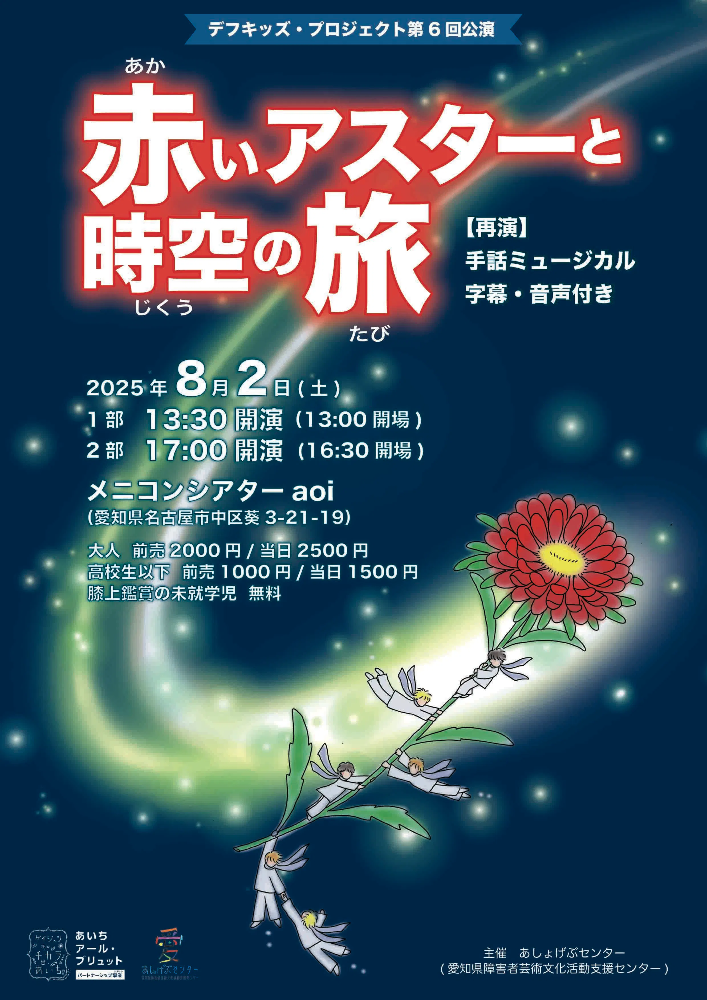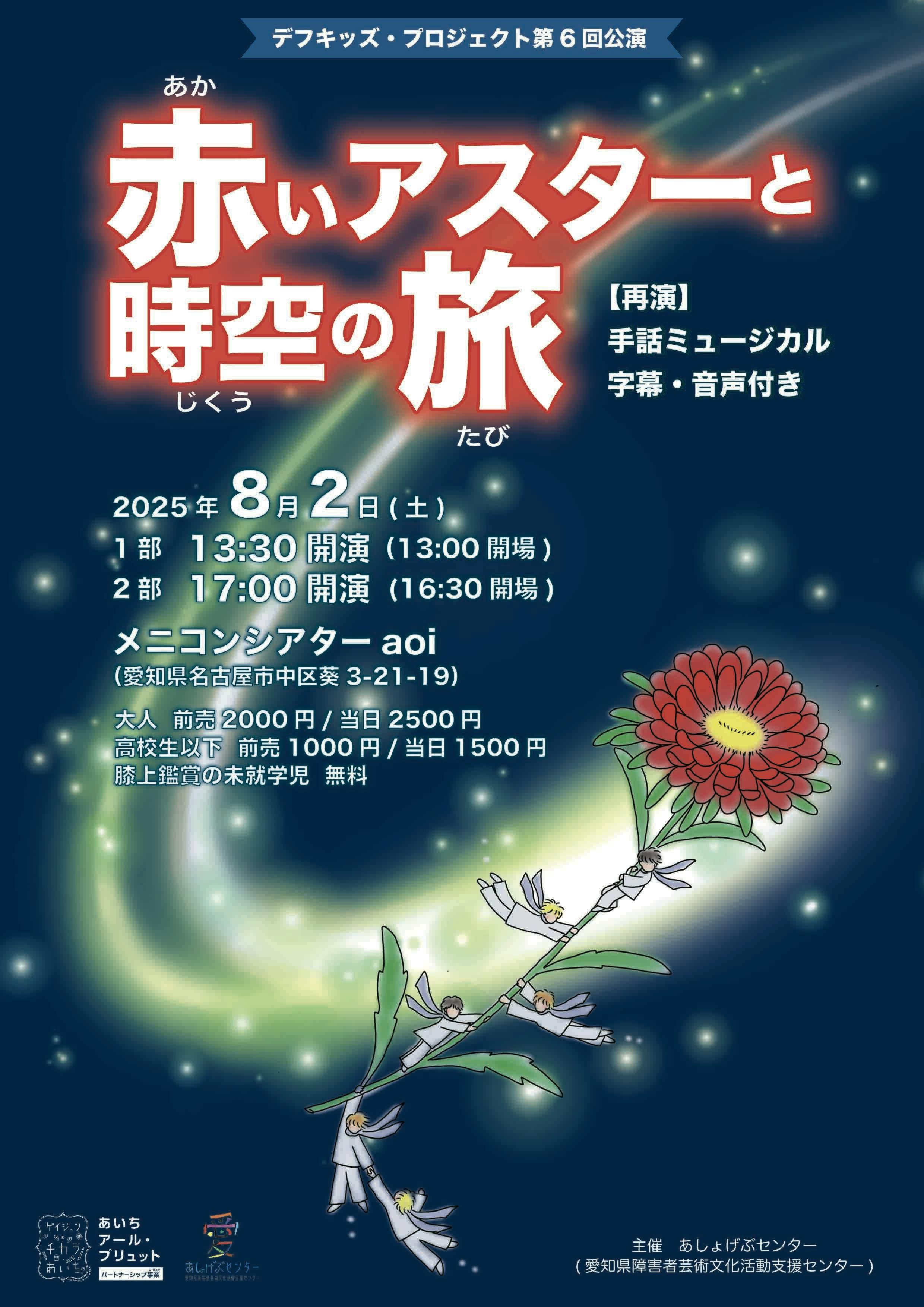 ●手話ミュージカル『赤いアスターと時空の旅』 8/2(土)13:30〜と17:00〜の2回公演 メニコン シアターAoi(名古屋市千種区)