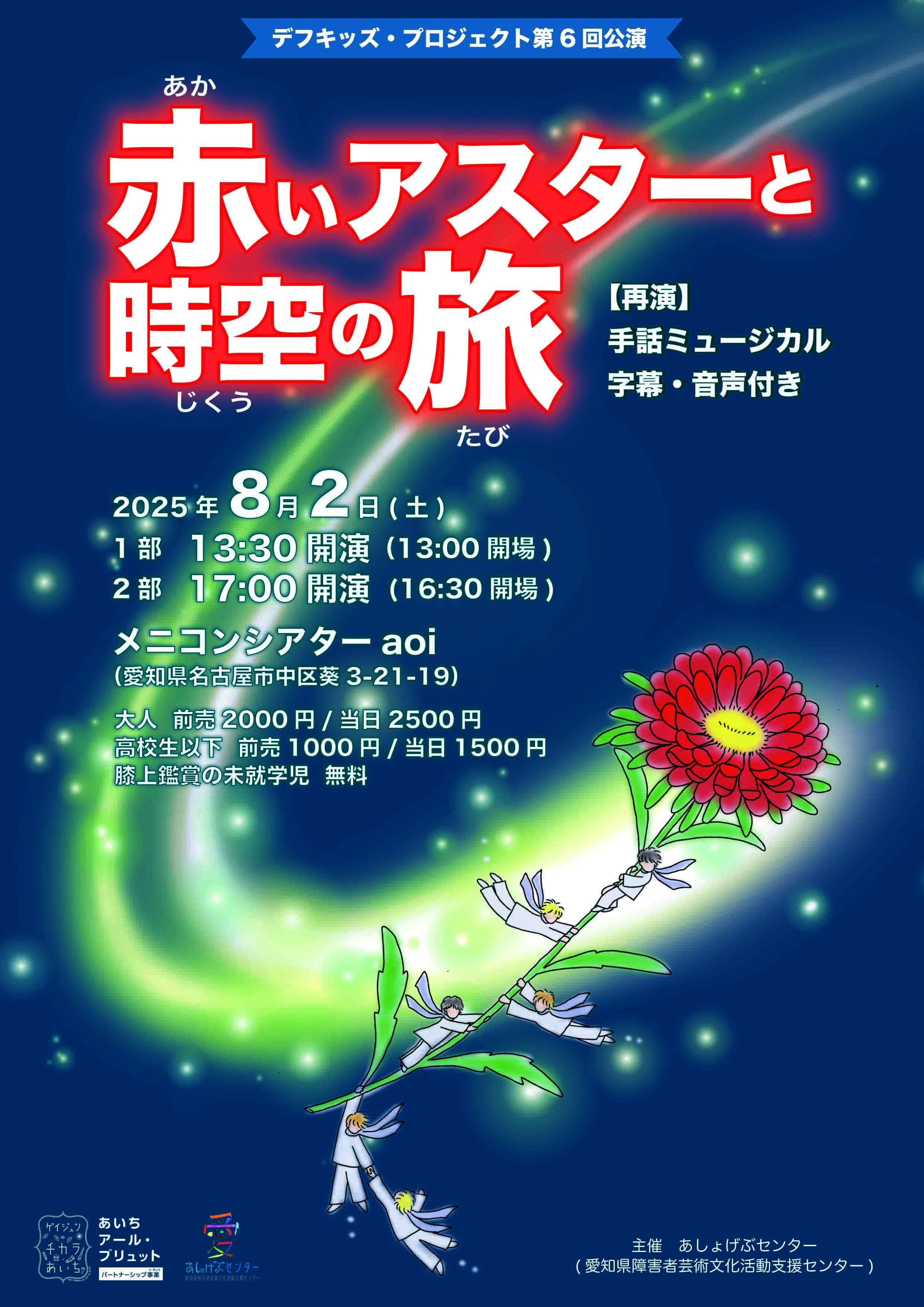 ●手話ミュージカル『赤いアスターと時空の旅』 8/2(土)13:30〜と17:00〜の2回公演 メニコン シアターAoi(名古屋市千種区)