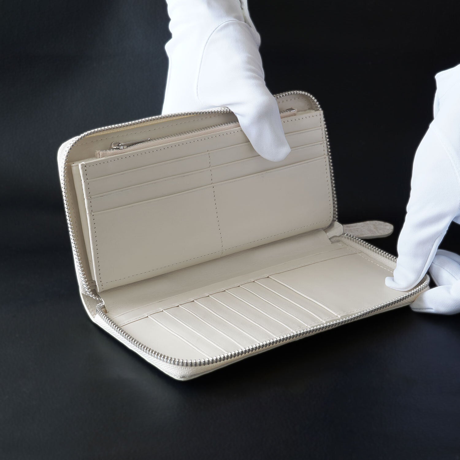 日常で使える「芸術品」。収納力も妥協なし。GLAMは見た目だけでなく、機能性にも徹底的にこだわりました。ラウンドジップを大きく開けられる仕様で、小銭や札・カードも取り出しやすく、収納力も抜群。