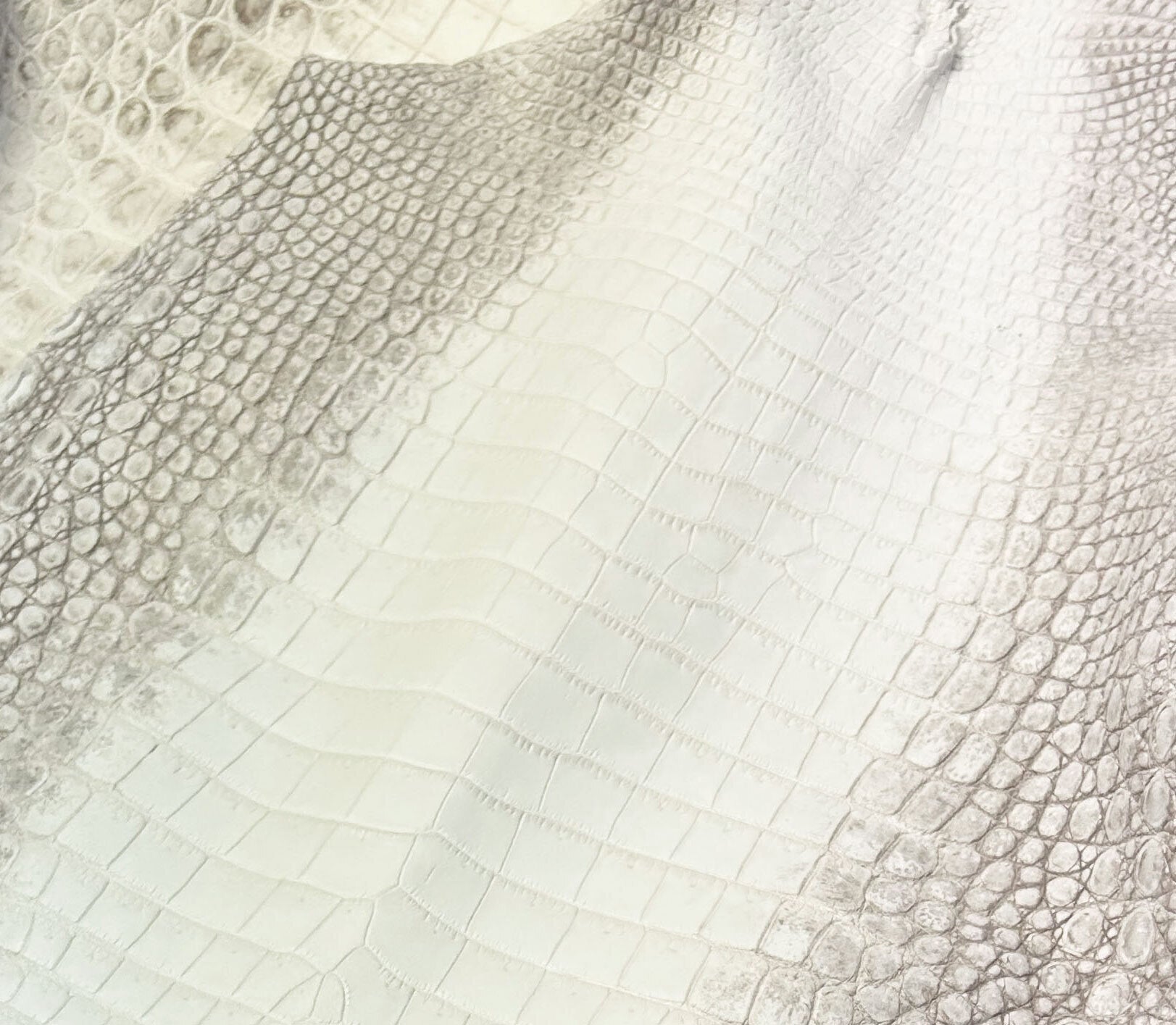 シャムワニは、クロコダイルの中でも比較的均一の取れたウロコ模様を持ち、革の表情が美しいです。 特に、腹部の四角い鱗(スケール)は高級感が際立ちます。