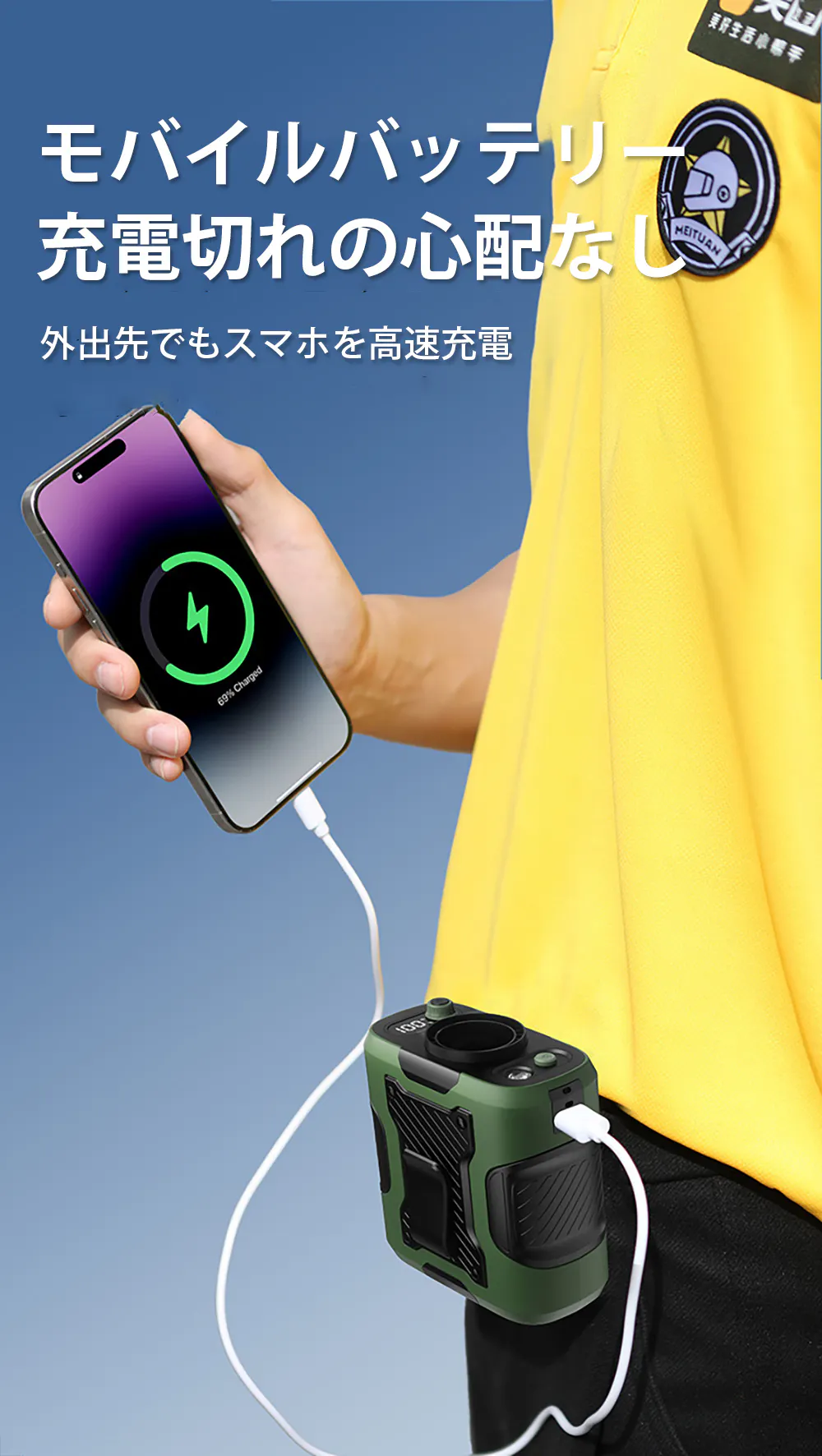 夏の屋外作業や外出時には、小型扇風機やうちわを持ち歩いて作業するのは不便で、逆に疲れと暑さが増してしまいます。