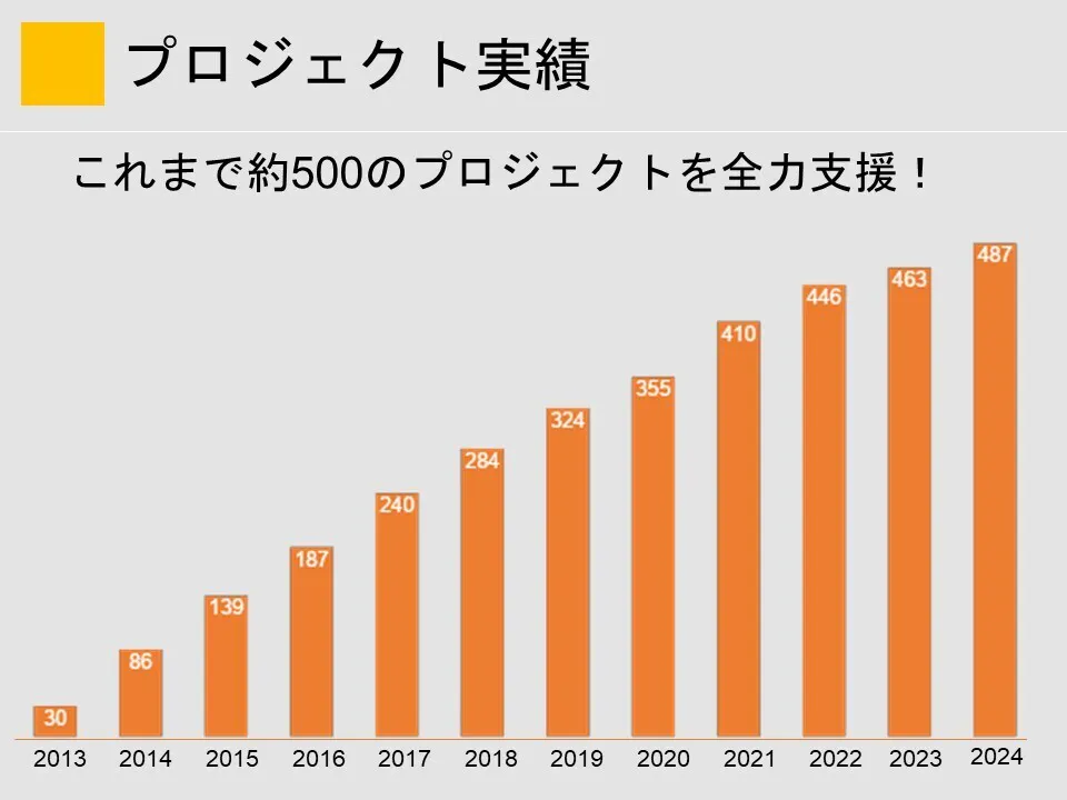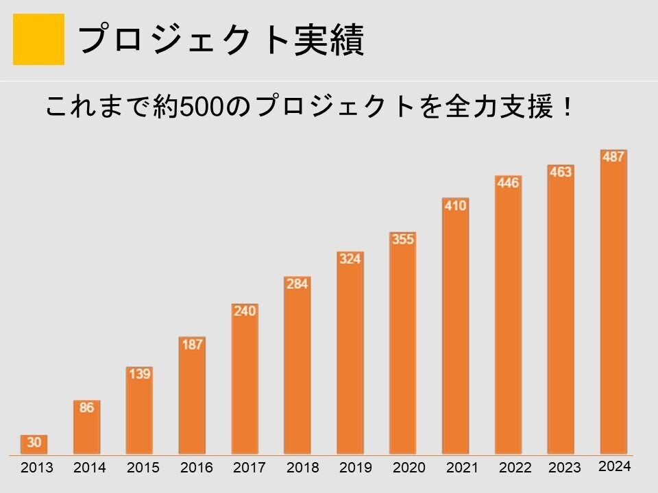 これまでに全力で支援してきたプロジェクトは、なんと約500件。13年にわたり、地域の課題をチャンスに変える数々の挑戦を後押しし、実現してきました。