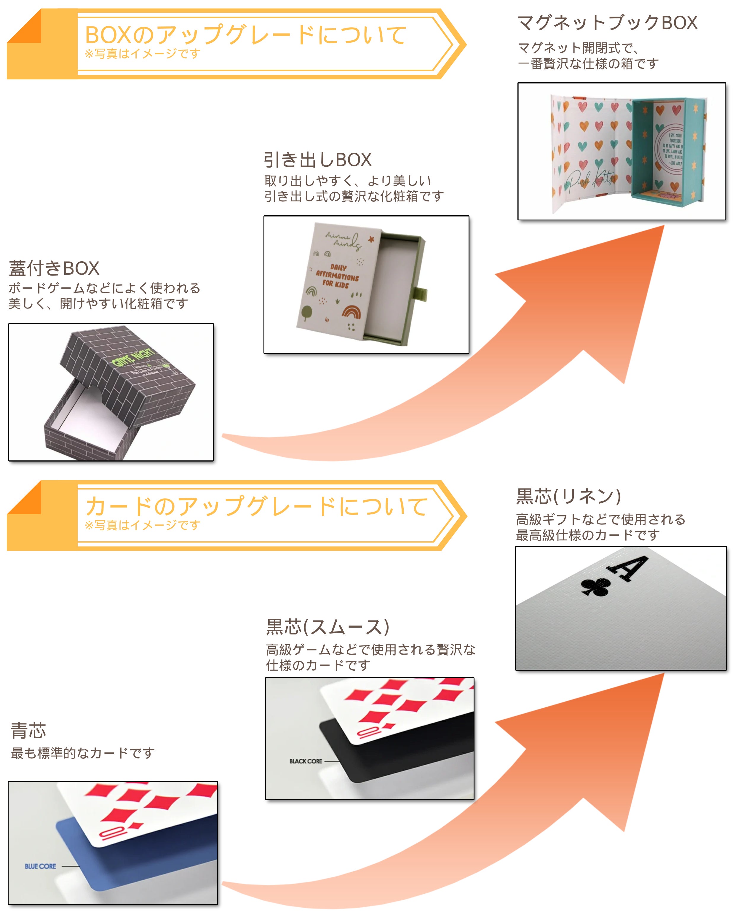 今回のプロジェクトでは「#うさぎトランプ」を皆さまのお手元にお届けできることをゴールとしています。その為、「#うさぎトランプ」自体の品質をより魅力的なものに昇華する為、ストレッチゴールを通じてBOXとカードの品質をアップグレードする事を目指します。どのようにアップグレードしていくかは以下の通りとなっている為、是非リターンして頂けると嬉しいです!