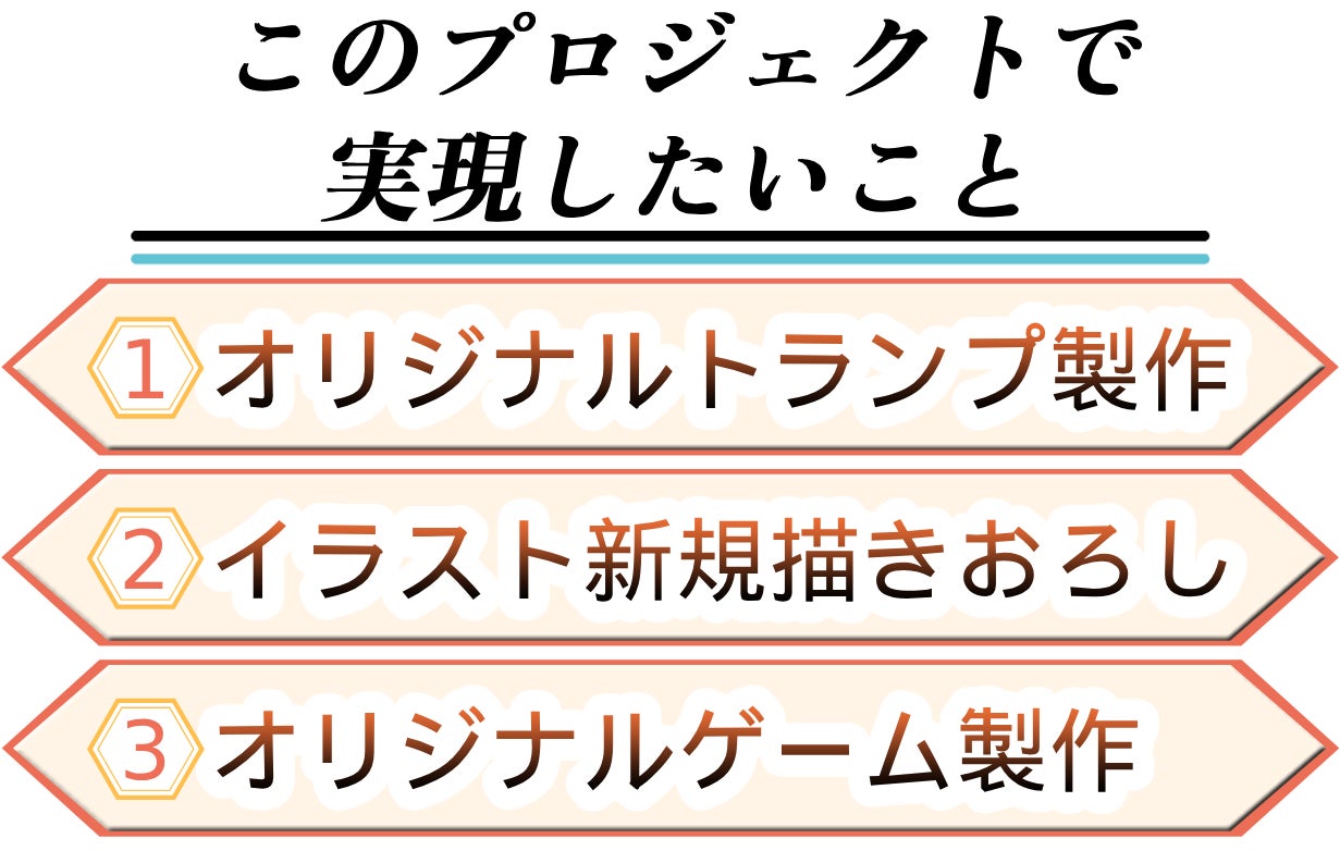 『オリジナルトランプ製作』『イラスト新規描きおろし』『オリジナルゲームの製作』が本プロジェクトで実現したい事となっています。うさぎ好きの誰かへの贈り物などにも最適なグッズになる予定ですので、プレゼントなどでご検討頂けると嬉しいです。